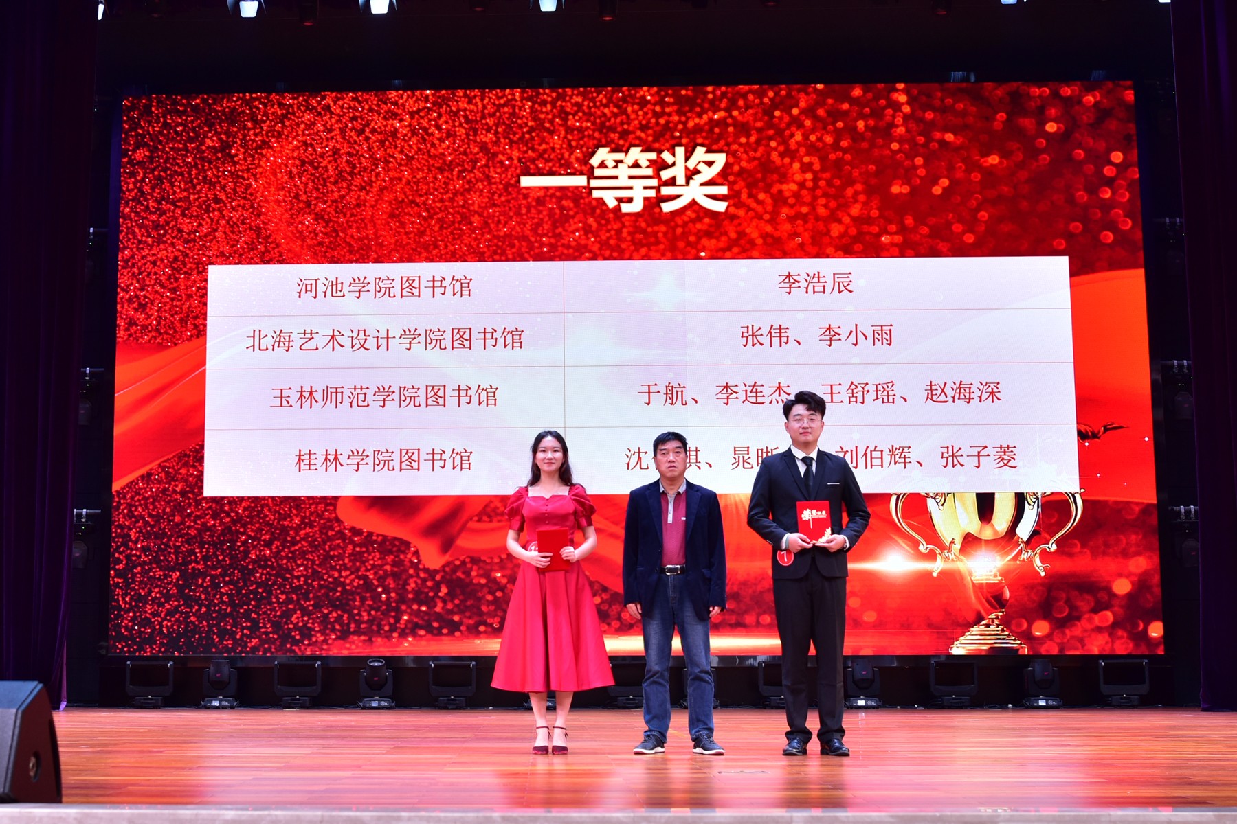 11月18日-19日,第四届广西高校图书馆朗读大赛决赛在广西建设职业技术学院顺利举行。本次朗诵大赛由广西高教学会图书馆专业委员会、广西高校图书情报工作指导委员会主办,来自全区55所高校参赛,作品达16633篇,规模达到历届之最。参赛选手分本科组和高职组,我校动画与传媒学院学生张伟、李小雨同学代表学校参赛,他们在众多选手中脱颖而出,荣获本科院校组一等奖。