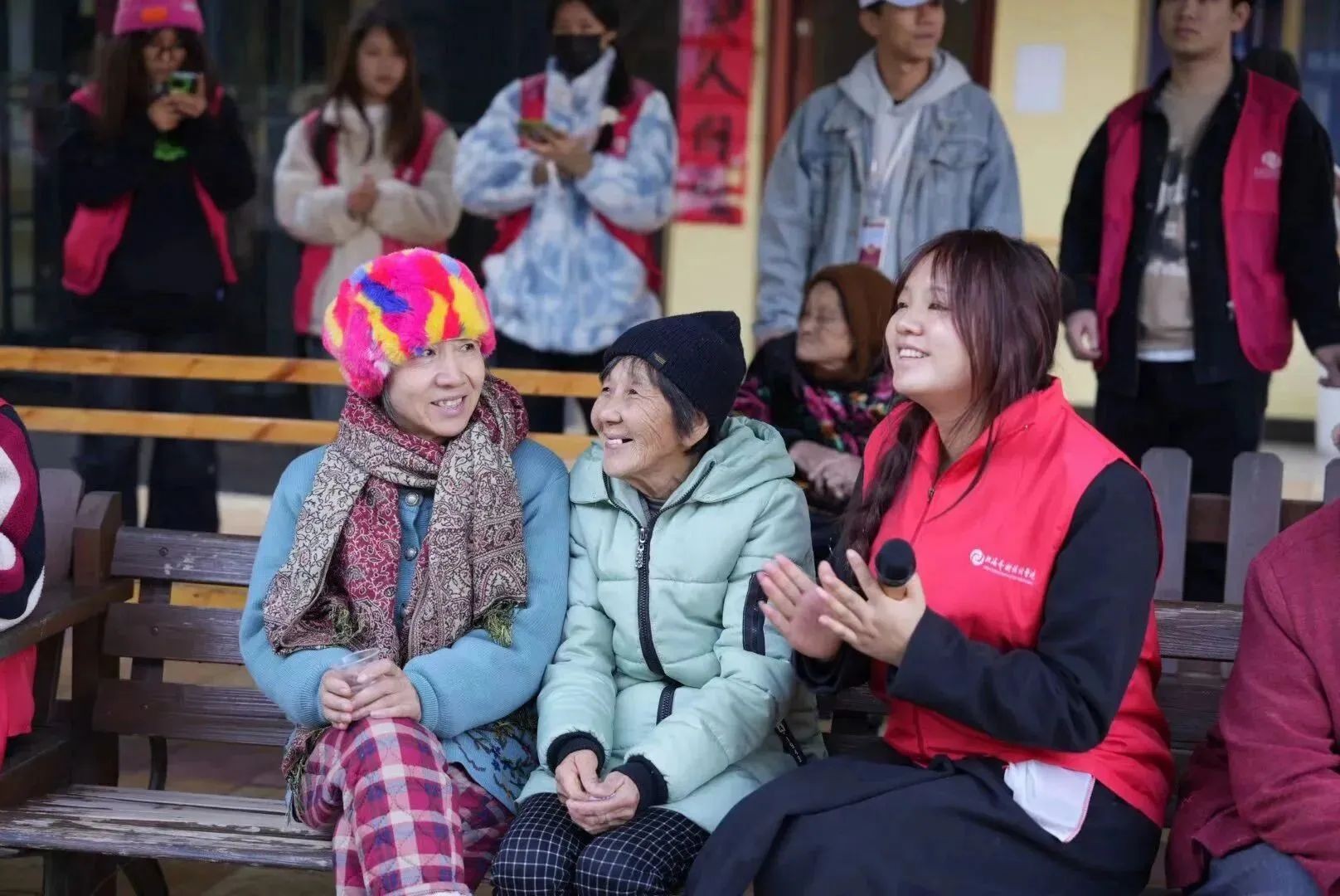 老吾老以及人之老。要像对待自己长辈一样,善待天下所有的老人。作为当代大学生有必要多和老人们交流沟通,倾听他们的人生之见,发现他们的需求,排解他们的忧虑。 作为动传分团委的志愿者,我们将继续秉承着“奉献、友爱、互助、进步”的志愿者精神,积极参与各种社会公益活动。我们相信,通过我们的努力,可以为社会带来更多的正能量,让更多的人感受到爱与关怀,让我们一起携手,用爱心和行动,为这个世界带来更多的美好和温暖!(李妍淇、左娇娇、钟佳怡/摄)(志愿者与老人们交谈)