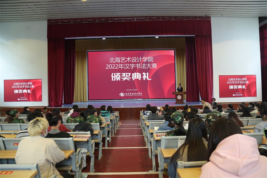 12月9日下午,我校2022年汉字书法大赛颁奖典礼在西校区大礼堂顺利举行。学校副校长胡胜、陶立阳出席典礼,设计艺术学院院长李林平、动画与传媒学院院长孙永辉、人文教育学院院长熊秀峰、美术学院院长龚为、马克思主义学院院长姜献生、通识教育学院院长杨莹、创新创业学院院长云曼、建筑与环境艺术学院副院长王文刚、教务处处长武鹏程、宣传部部长文春明参加典礼。