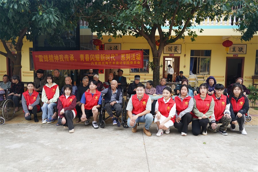 学校通过弘扬学习雷锋精神、践行雷锋精神,融合课程思政及学生实践弘扬时代新风,结合专业特色发挥专业优势,书写雷锋精神、绘制雕塑雷锋像、演绎雷锋故事、诵读雷锋日志、设计雷锋精神相关文创与影视动画作品等形式让雷锋精神全面系统融入日常课程之中,不断引导广大师生见贤思齐,矢志不渝传承雷锋精神。在直播活动中,“歌舞快闪”“爱心义卖”“‘雷锋精神’学习作品创作展示”等活动开展得如火如荼。师生集体齐唱歌舞节目《学习雷锋好榜样》,歌声铿锵、舞姿优美,现场互动热烈,在欢快气氛中深刻领悟雷锋精神内核;学生纷纷拿出手工制品进行校园爱心义卖,并将义卖所得捐赠到特殊学校进行爱心捐助,以实际行动传播爱心能量;学生通过现场书写、制作、绘制弘扬雷锋精神作品展示,诵读雷锋日志、讲述雷锋故事,传扬雷锋事迹,树立时代信念,让雷锋精神深入人心,滋养心灵。学校还组织开展“创城卫生清洁集中志愿服务”“敬老奉献”“北海银滩景区公益志愿服务”等活动,以实际行动宣扬雷锋精神。