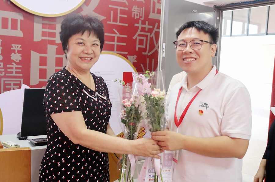 新入职教师向老教师送祝福