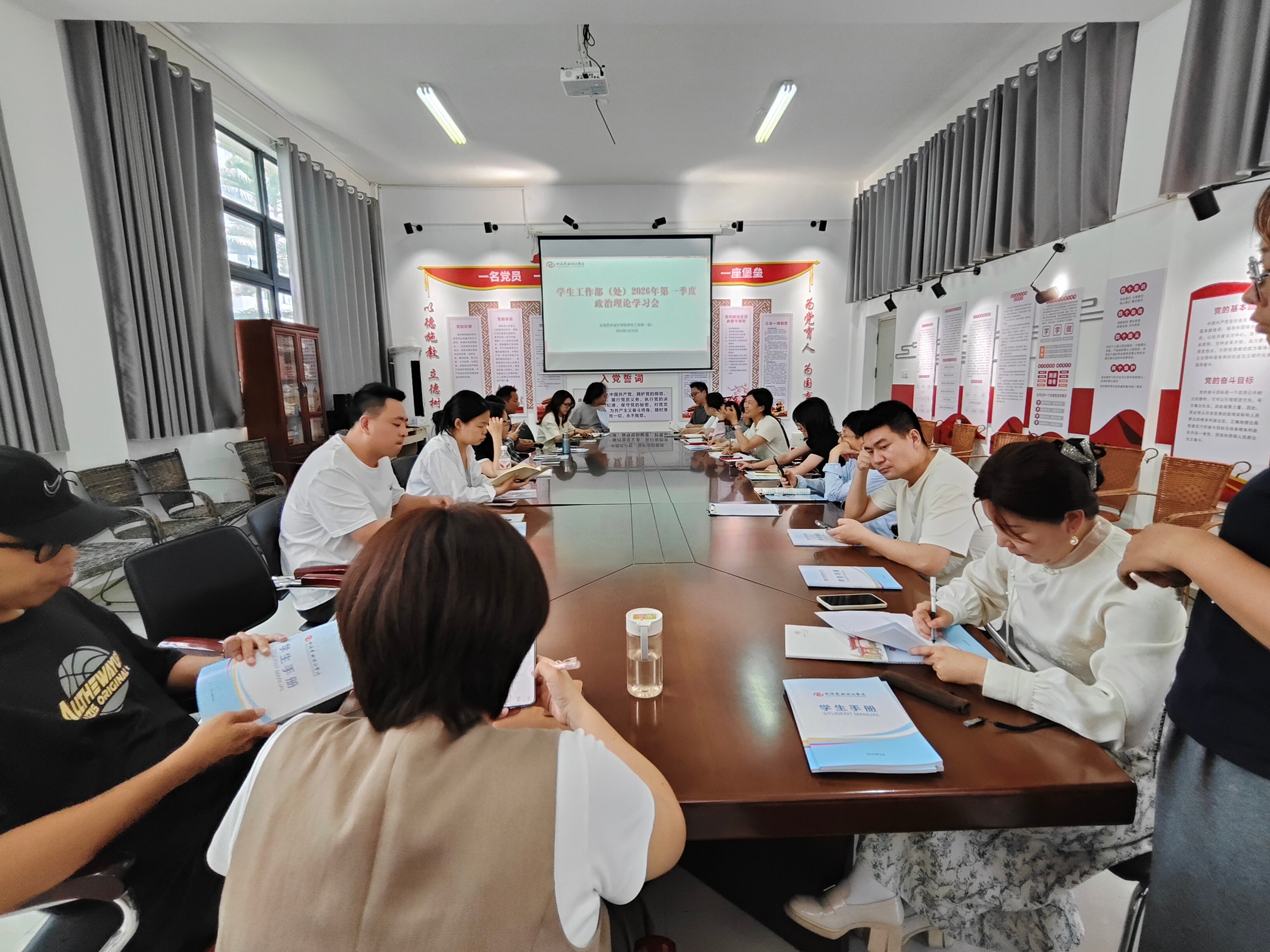 为深入学习贯彻习近平新时代中国特色社会主义思想和党的二十大精神,切实提升教职工政治理论素养,3月25日下午,学生工作部(处)在西校区学工楼204会议室召开2026年第一季度政治理论学习会。部门全体教职工参加会议。