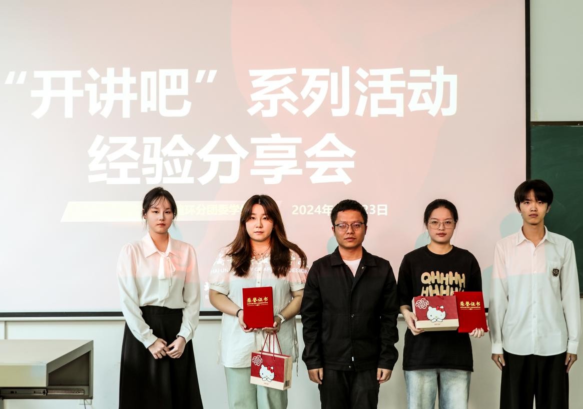 活动的最后,由建筑与环境艺术学院教务办田鹏老师为两位学姐颁发证书和奖品,以及建筑与环境艺术学院分团委陈宣辰副书记为张老师颁发证书和礼品。最后,所有的领导、老师和主讲人及现场的工作人员一同合照,为本次活动留下美好的回忆。本次“开讲吧”系列活动圆满结束!(王荣禄、战思伊/摄