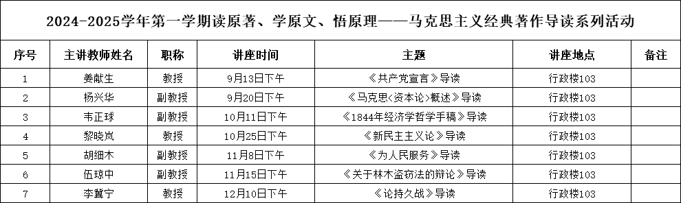 活动预告|2024-2025学年第一学期读原著、学原文、悟原理——马克思主义经典著作导读系列活动