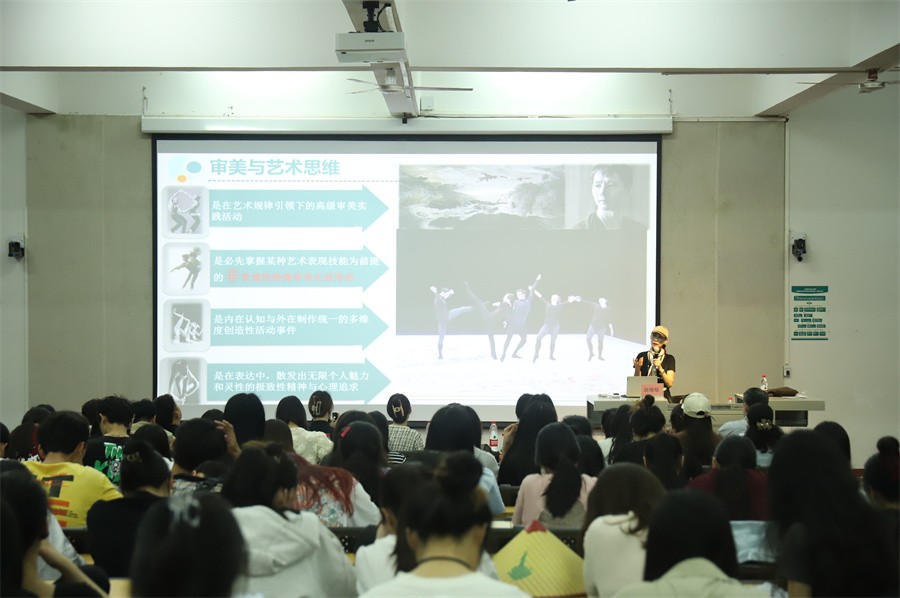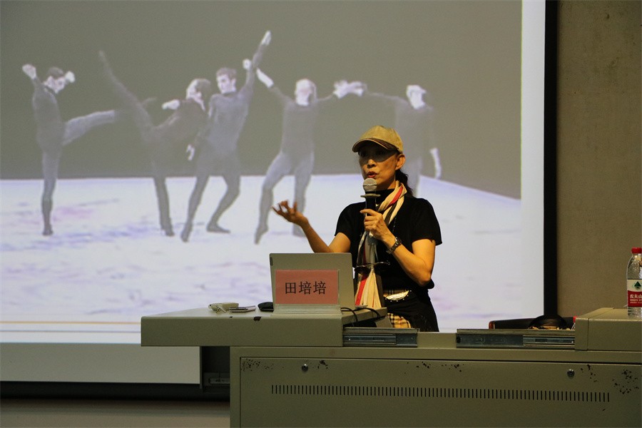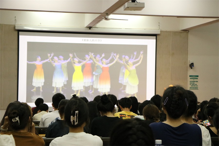 田教授播放了各种内容的专业舞蹈视频,带领师生领略肢体艺术的美,深刻阐述舞蹈艺术是用心里的眼睛观视一切,组构出多维立体的艺术表达设想。她强调,舞蹈艺术创作是以人体为核心材料,基于镜框式舞台空间,表现出独特的综合艺术表达视像。