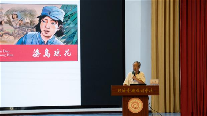 讲座伊始,王伟教授结合个人经验,以连环画的创作为切入点,分享了艺术实践的经验和领悟。他表示,人有目标,不会迷茫。相比较于浑浑噩噩虚度光阴,那些明晰自己为什么而活,踏实朝着目标前进的人,才能让自己行走的每一步都有价值。随后,王伟教授就关于中国文化主题原创内容展开讲解。他特别强调艺术创作要有发现美的眼睛,在中国传统文化中寻找灵感,还需给自己设立每日的目标,沿着既定的轨迹前行,在追逐目标的过程中不断提升自己。