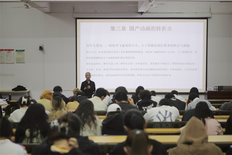 11月15日晚,动画与传媒学院特聘教授黄惠忠教授于我校西区伦理楼107教室,为广大师生带来了一场题为《百年大变局下中国动画的挑战与机遇》的精彩讲座。