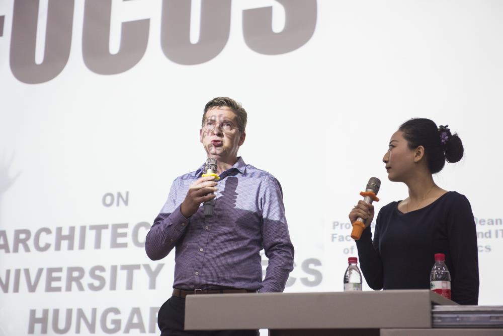 Balint教授首先做了自我简介,随后他用PPT展示了匈牙利周边郊区的建筑设计并介绍了佩奇大学的地理位置和人口数量。Balint教授说:学校由国王建立于1367年,明年将迎来她的650周年生日。