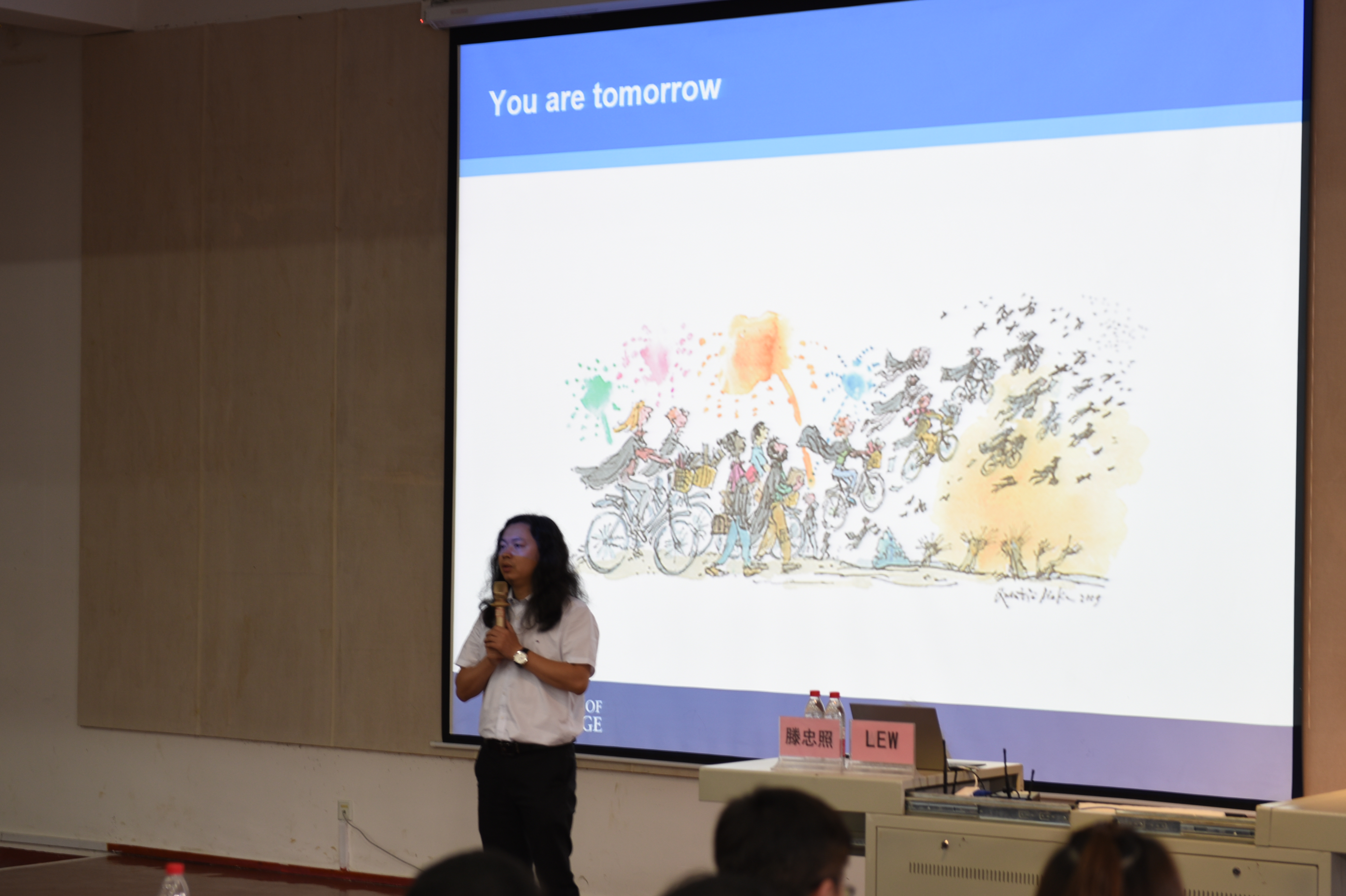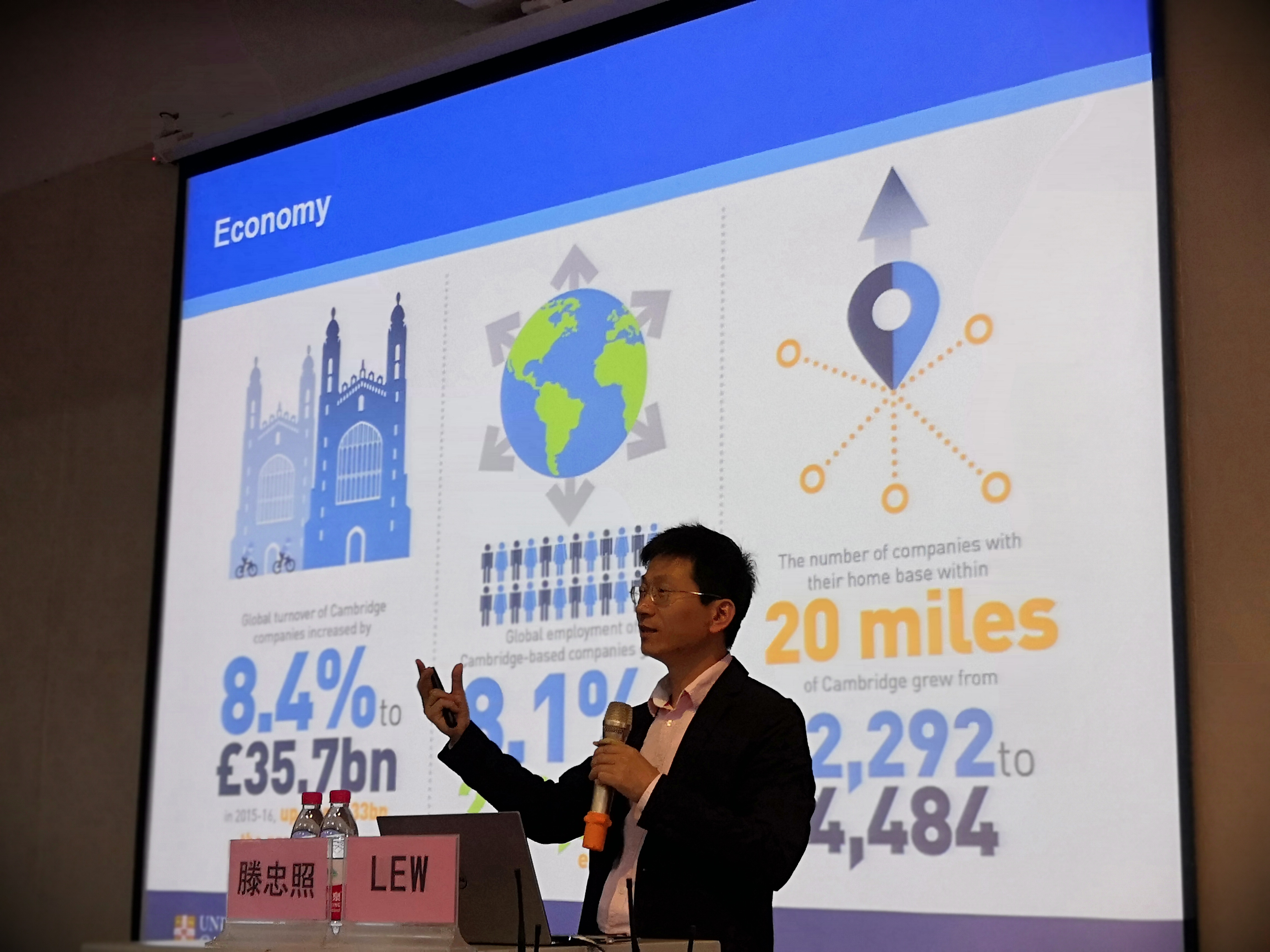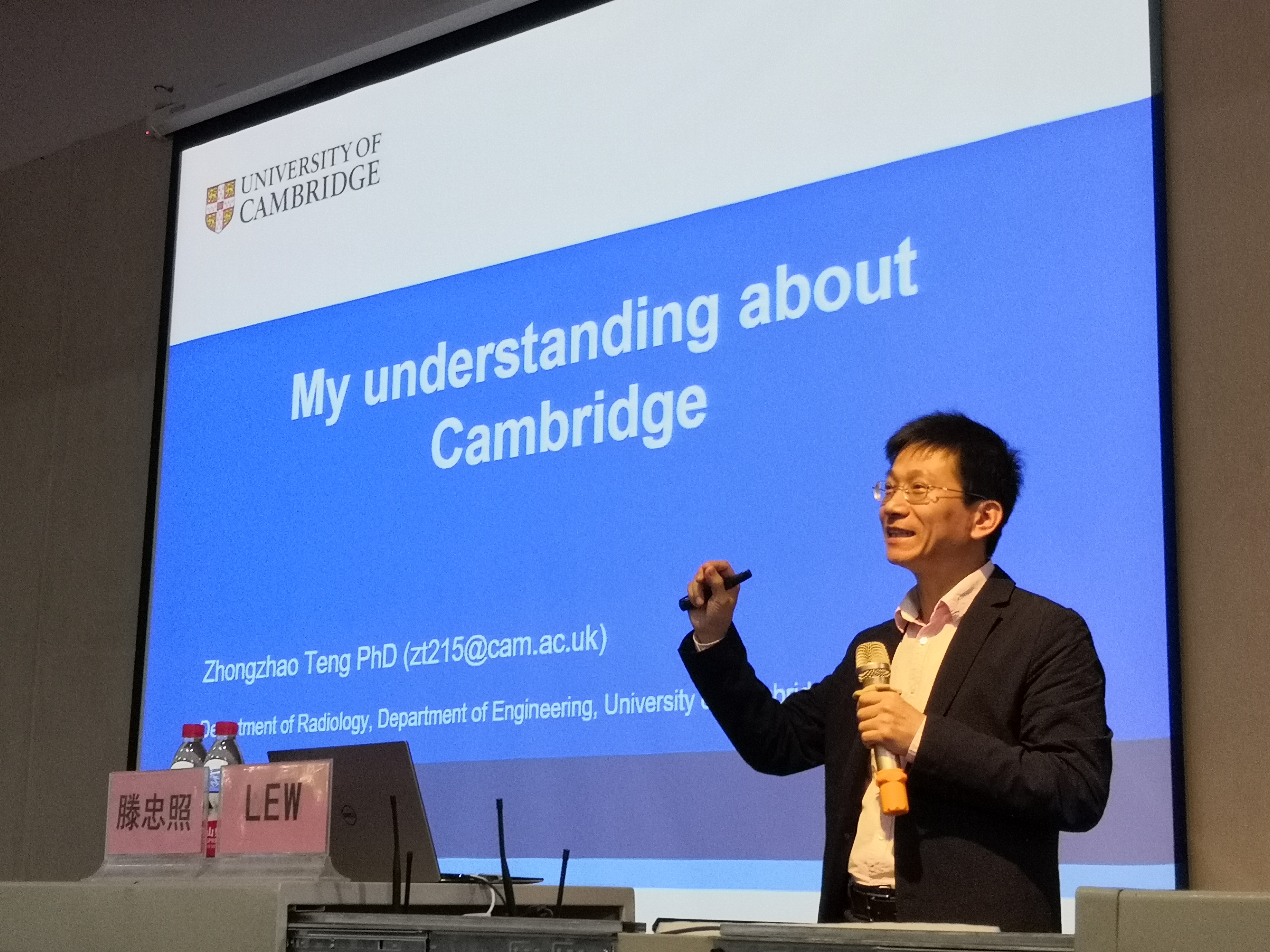 紧接着,滕忠照先生上台为大家进一步讲述剑桥的魅力之处。他先是从自身的求学经历说起。正是对剑桥大学的向往,使得他克服种种困难最终步入自己理想的圣地——剑桥大学进行学习和工作。