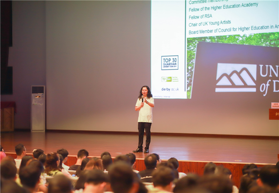 2019年9月16日(星期一)晚上7点30分于我校西校区大礼堂,英国德比大学艺术学院常务院长大卫·麦葛威(DAVID McGRAVIE)受邀到我校作一场题为《在英国艺术设计的画廊中驰骋》的讲座,现场座无虚席。本次讲座由胡胜副校长主持。
