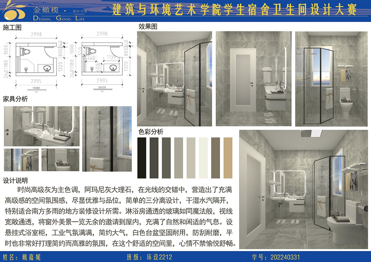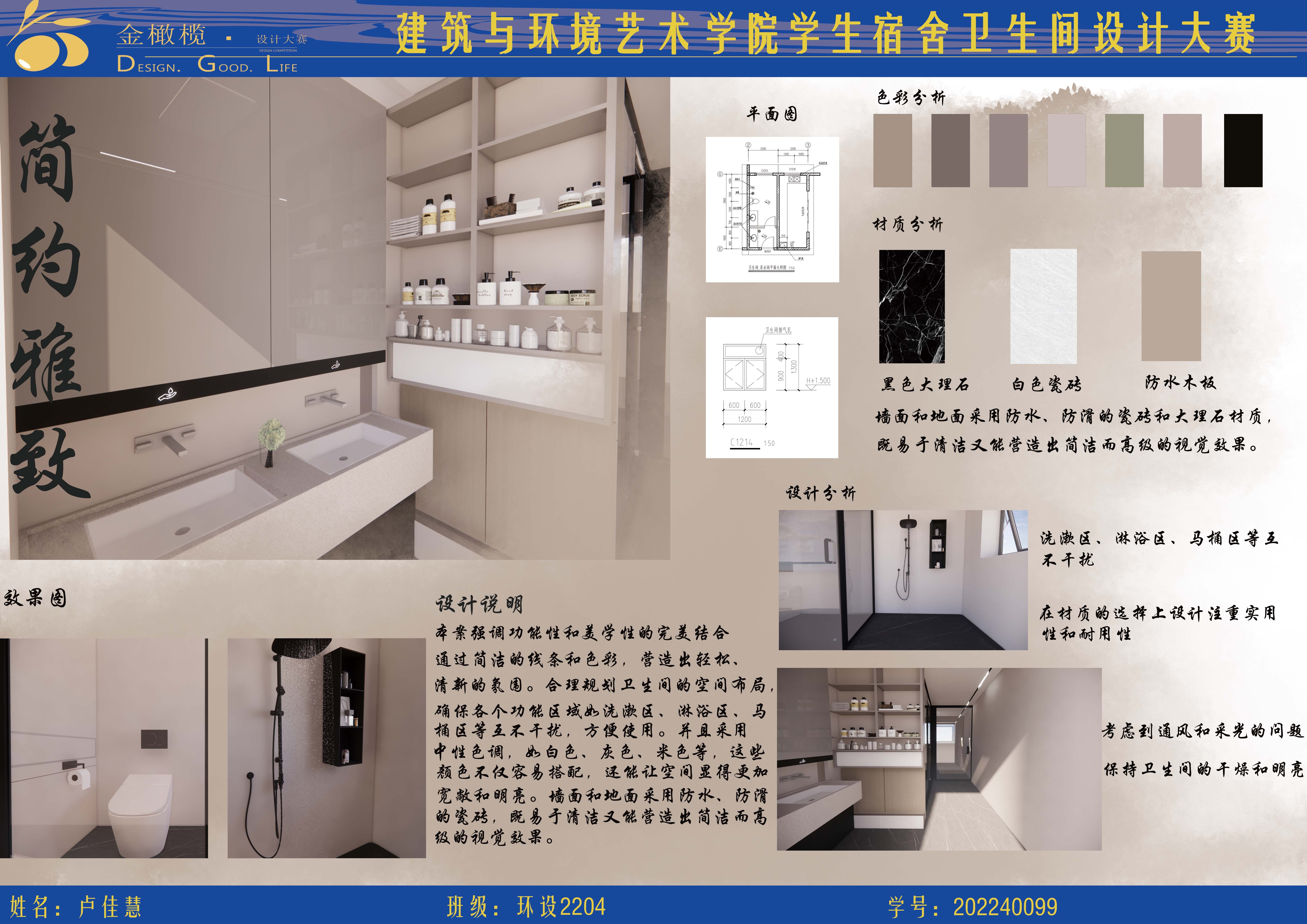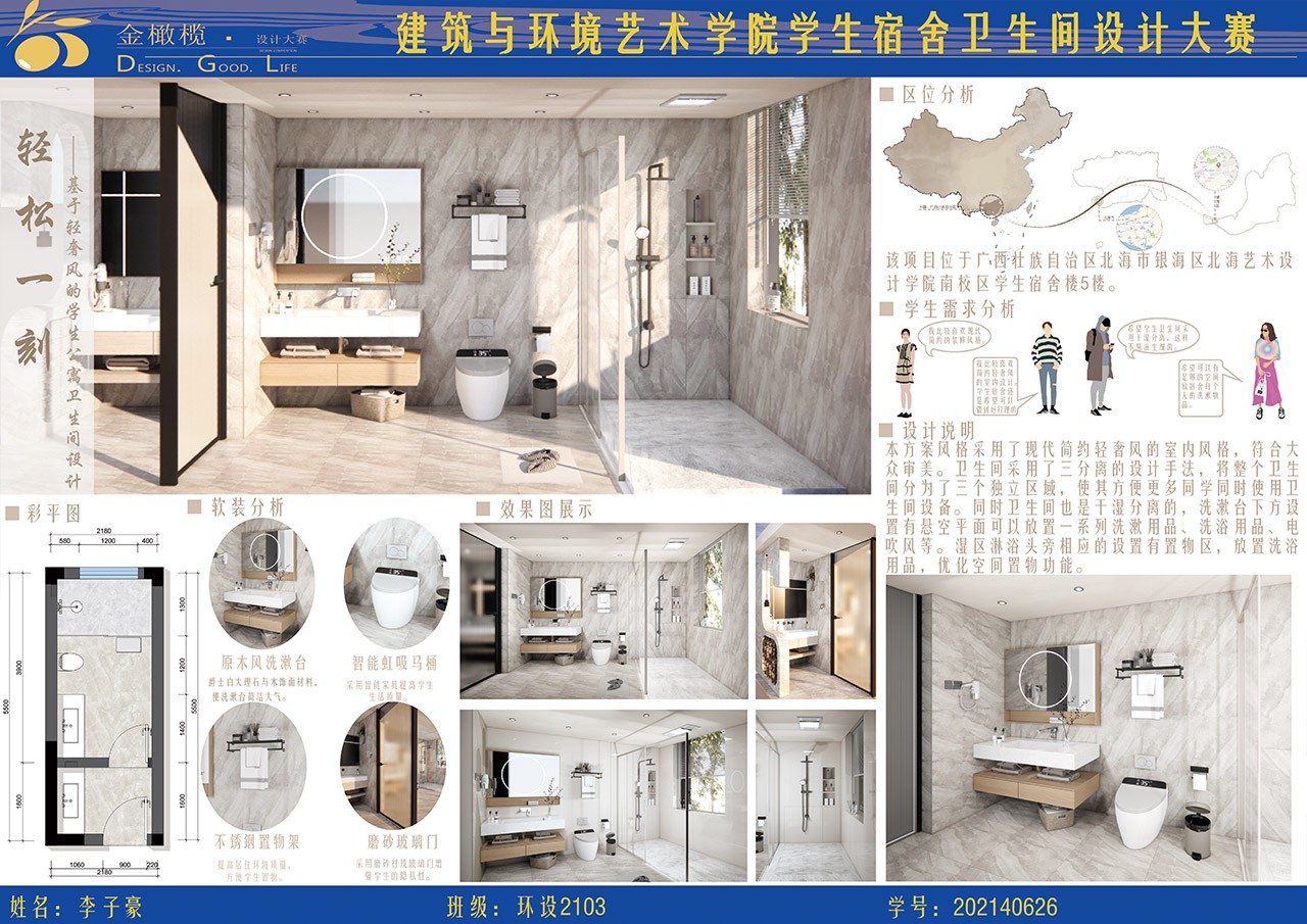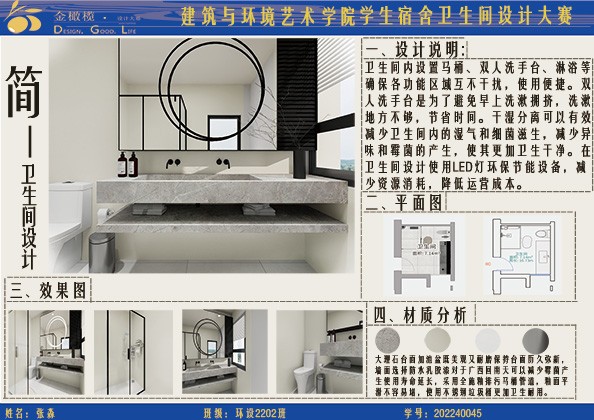 2024年 建筑与环境艺术学院 金橄榄 学生宿舍卫生间设计大赛