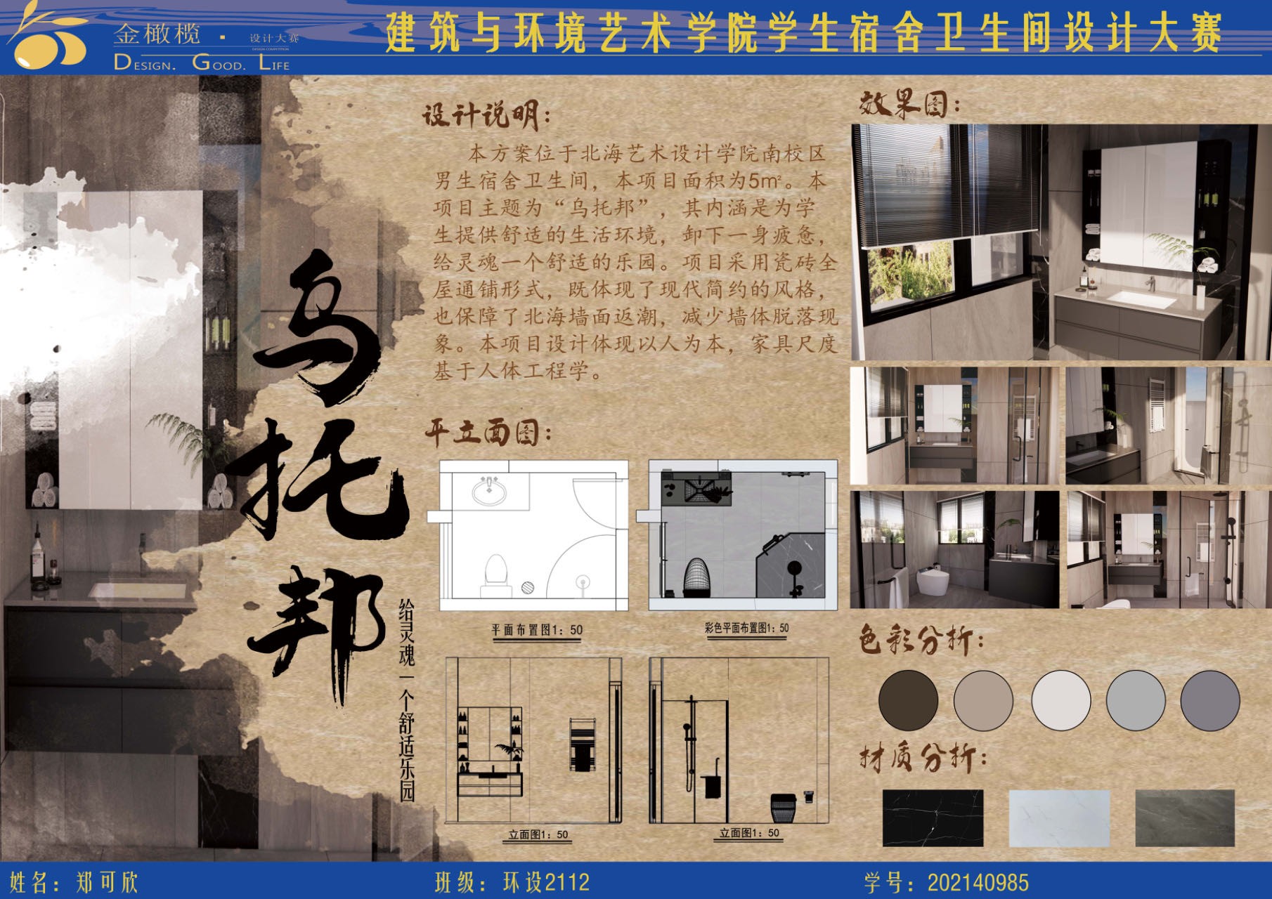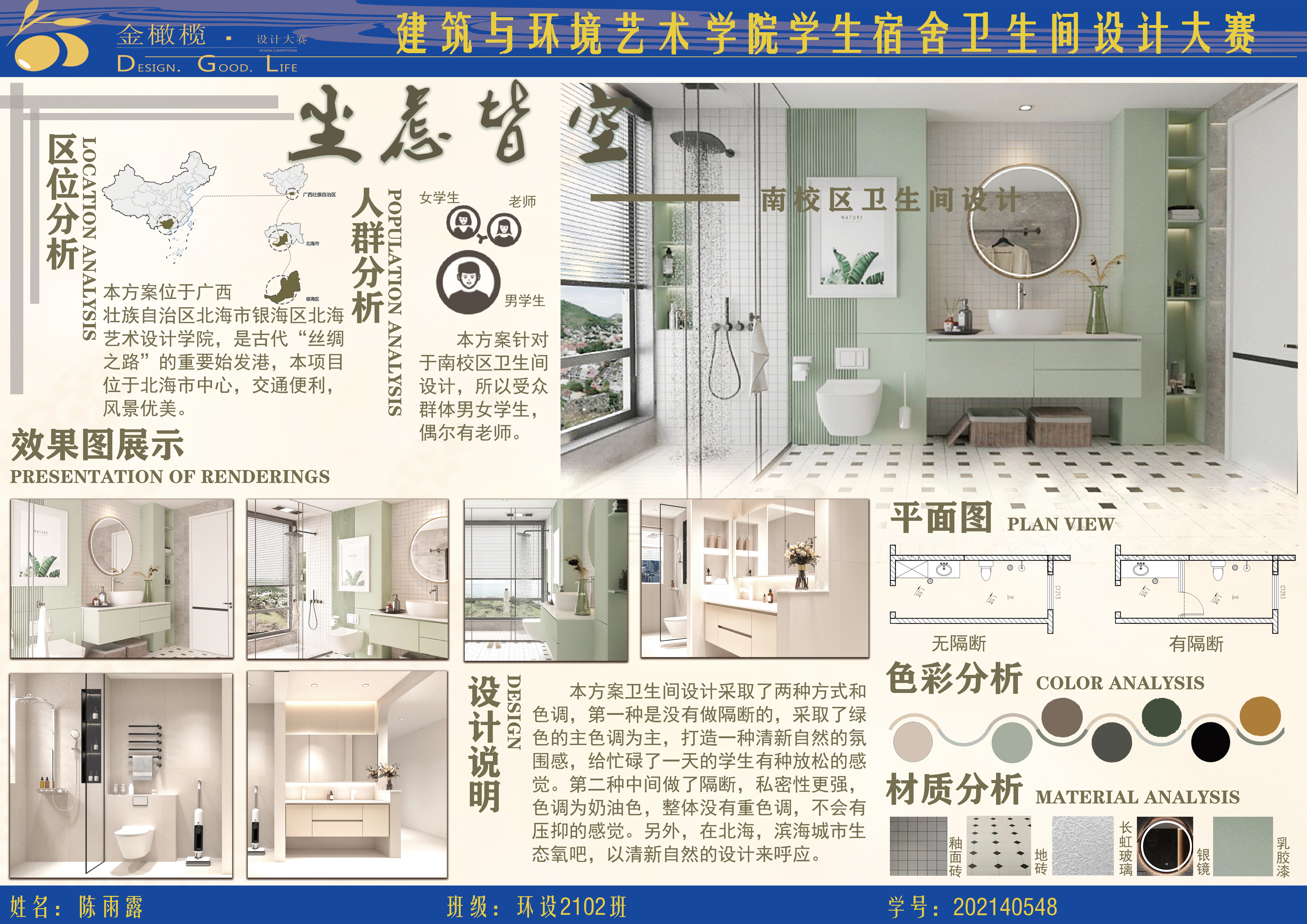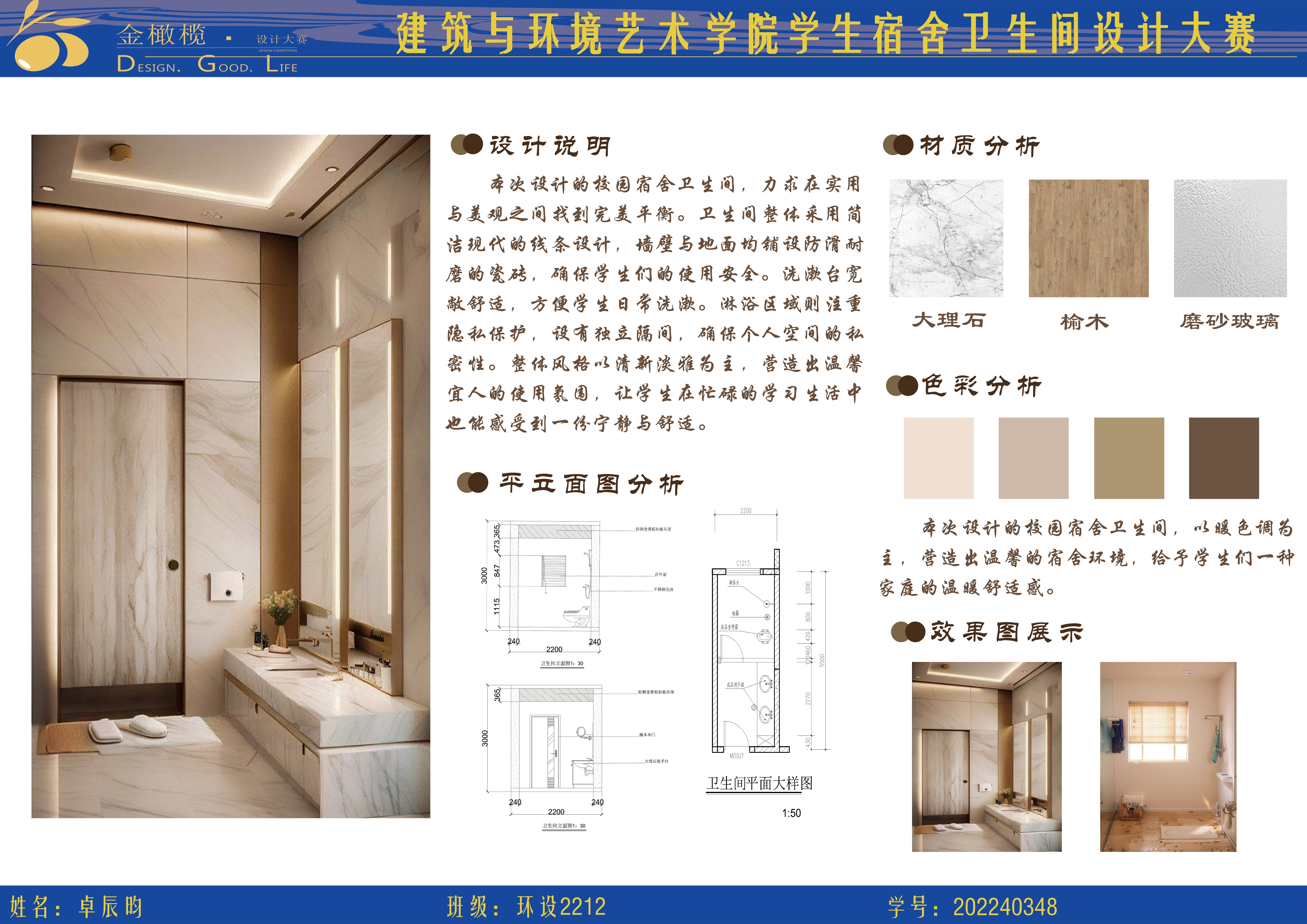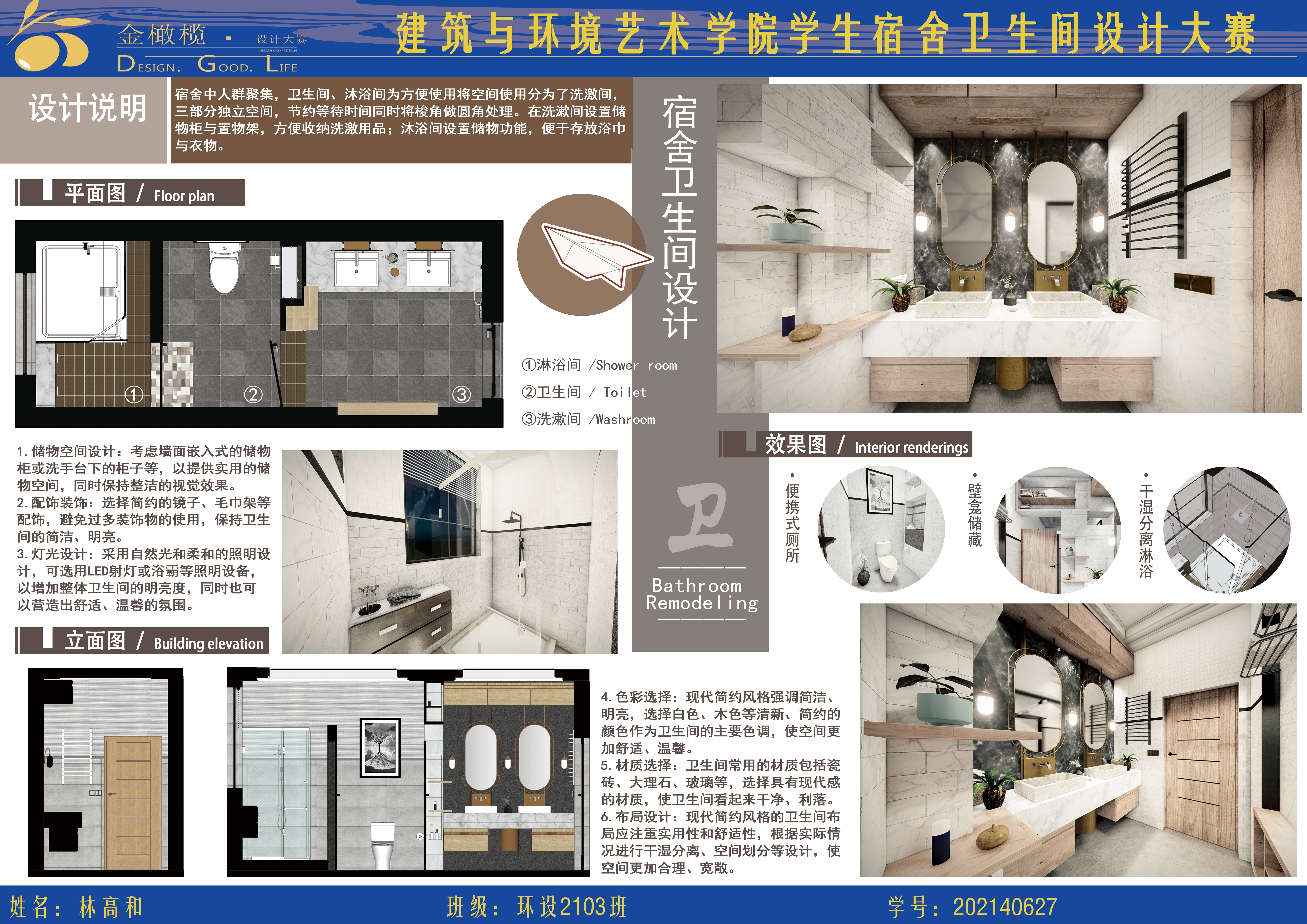 2024年 建筑与环境艺术学院 金橄榄 学生宿舍卫生间设计大赛