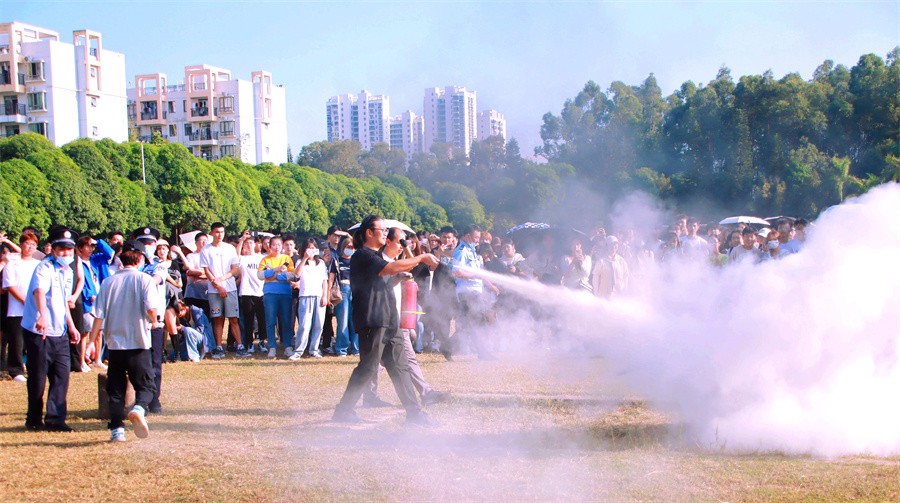 为帮助学校师生更好更快地掌握消防知识与正确使用灭火器方法,增强消防意识,提高对火灾的应变能力,创造更加良好安全的校园环境。11月11日下午,我校于东校区操场开展2022年消防灭火演练活动。学校副校长刘朝雄,保卫处副处长冯海波、副处长林炳堂以及各二级学院负责学生工作党总支副书记出席本次活动,学生工作处人员、保卫处全体工作人员、2022级辅导员以及学生干部参加演练。演练由学校保卫处处长季运强主持。