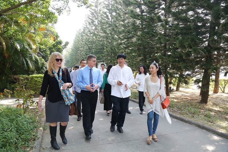 最后,一行人参观了我院新建的图书馆。Philip Reubin Johnso校长对我院的校园环境和教学实力表示高度赞扬,他表示我院的办学理念和发展模式都非常值得学习,并且非常期待接下来的合作交流。郑副院长也希望两校能够建立深厚的联系,通过学习共同进步,为中美友好及艺术文化发展作出贡献。
