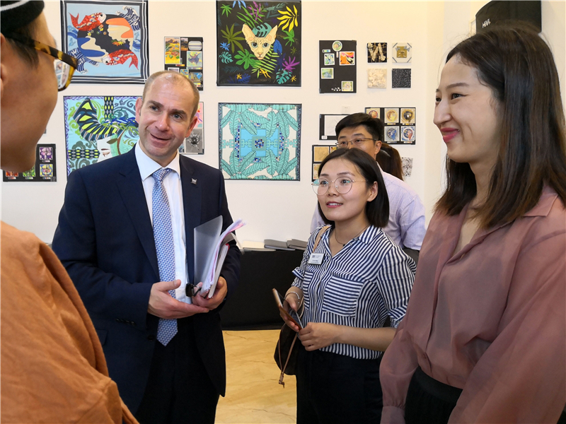 (德比大学校领导走进环艺学院基础课堂,对《异性偶像》课程教学表示赞赏)
