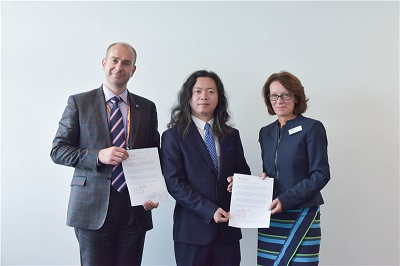 (我校执行董事郑超与英国德比大学常务副校长Dr.Judith签约)