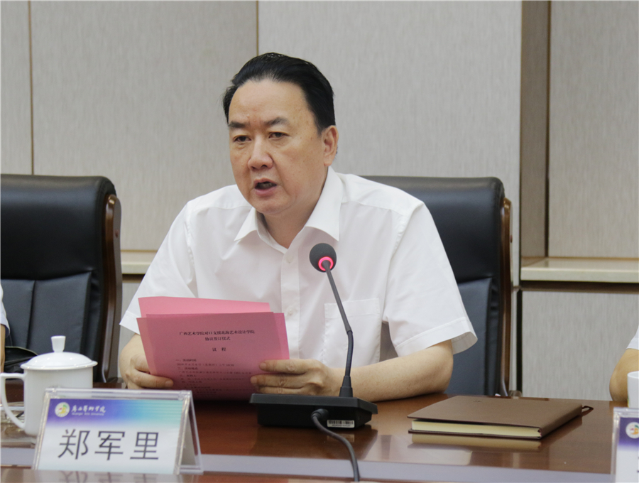 郑军里校长代表广西艺术学院致辞,他指出,此次签订对口支援协议是双方贯彻落实党的十九大、全国教育大会以及新时代全国高等学校本科教育工作会议精神的重要举措,是推动广西高等教育发展的一项具体落地工程。广西艺术学院将充分发挥自身优势,为北海艺术设计学院的建设和发展提供必要的力所能及的支持,为提升我区高等教育质量、促进本科高校改革发展贡献力量!