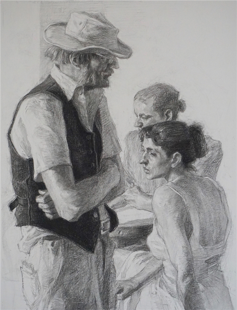随后,计宇教授开始范画演示,他先把感觉上的大轮廓画出来,而后找具体的关系。并表示绘画的过程是一个修复的过程,要逐步地把它完善。作画中他给同学们细心讲解作画步骤及要领,从结构方面着手深入刻画,逐步使画面更加完整。在模特休息的课间,他与同学们亲切交谈,并倡导要把实践与理论结合起来。