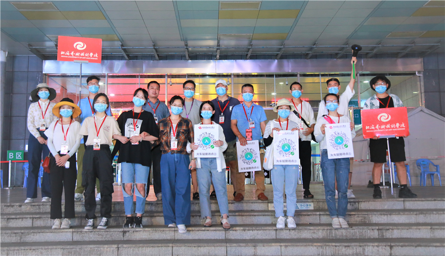 学生在火车站、机场进行测温、扫码、核验身份、排号入座,由专车送到校后再逐项完成校内报到流程。整个接待过程中,严格实行执行“点对点”闭环管理,各工作组密切配合,有条不紊完成各项接待工作。