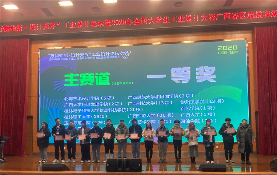 2020年12月19日,由广西自治区教育厅、桂林电子科技大学共同主办的“万物始新·设计无界”工业设计论坛暨全国大学生工业设计大赛(广西赛区)选拔赛颁奖典礼在桂林电子科技大学花江校区举行。桂林市政府相关领导以及全区各高校领导、师生代表参加了颁奖典礼。
