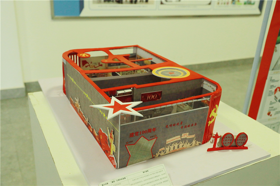 “设”:为扎实开展党史学习教育,创新学习教育形式,环境艺术学院结合专业特色,把红色文化元素融入《展示空间设计》专业课堂中,开展“跟着设计学党史”活动。学生收集党史故事和红色素材,把党史素材融入日常设计创作中,制作的“光辉历程--建党百年”主题、“抗美援朝”主题、“抗疫展厅”等惟妙惟肖,教育激励广大青年学子坚定理想信念,牢记初心使命,厚植家国情怀。