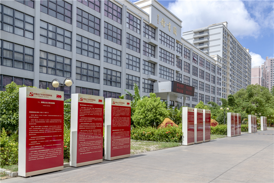 “展”:一是创建党史学习专栏。在学校微信公众号创建党史学习专栏,及时反映党史学习教育推进动态。目前官微开设有“感党恩·跟党走——党史知识大家答”、党史故事大家讲、《美术经典中的党史》连载等。二是开辟党史教育文化长廊。学校以《中国共产党百年历程导读》为主要内容,在西校区图书馆前制作了15块室外“百年党史历程”展示长廊,展示长廊位于学校人流量密集路段,师生下课后常常驻足观看,重温中国共产党的光辉历程。
