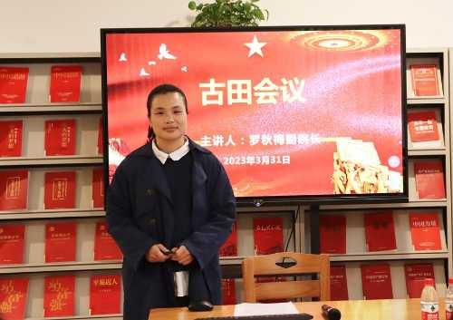 罗秋梅副教授专题讲授《思想建党 政治建军——古田会议》,以古田会议旧址为引,紧密围绕“古田会议为什么永放光芒”这一问题,从古田会议召开背景、主要内容、历史地位等方面,深刻阐述了古田会议的本质和精髓“思想建党 政治建军”这一对我党我军重大而深远的历史和现实意义。她强调,坚持党对军队的绝对领导,是党指挥枪,而非枪指挥党。中国人民解放军是党的军队、人民的军队、社会主义国家的军队,紧紧地和人民站在一起,全心全意地为人民服务,这是中国人民解放军有别于其他军队的根本所在。