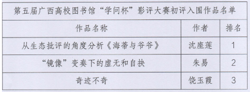 第五届广西高校图书馆"学问杯"影评大赛初评入围作品名单