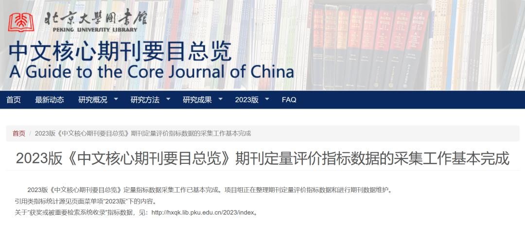 2023版《中文核心期刊要目总览》期刊定量评价指标数据的采集工作基本完成