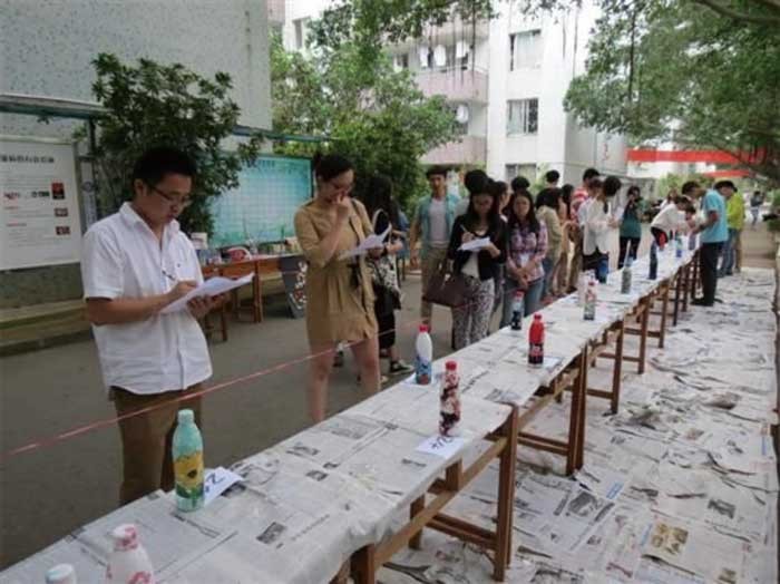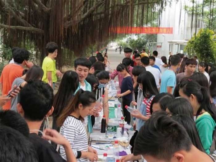 而在塑料瓶现场绘画大赛中,共有26组参赛选手都在竭尽全力地发挥着自己的才能,利用现场提供的塑料瓶和颜料把透明的塑料瓶变得多姿多彩。现场无处不展示出我们北艺学子们的智慧与才华。