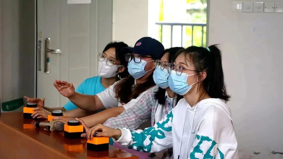 最后一轮,团队抢答题。选手们对面前的抢答器也紧张起来,在没有“犯规”的情况下抢到的团队也是充满自信的回答。