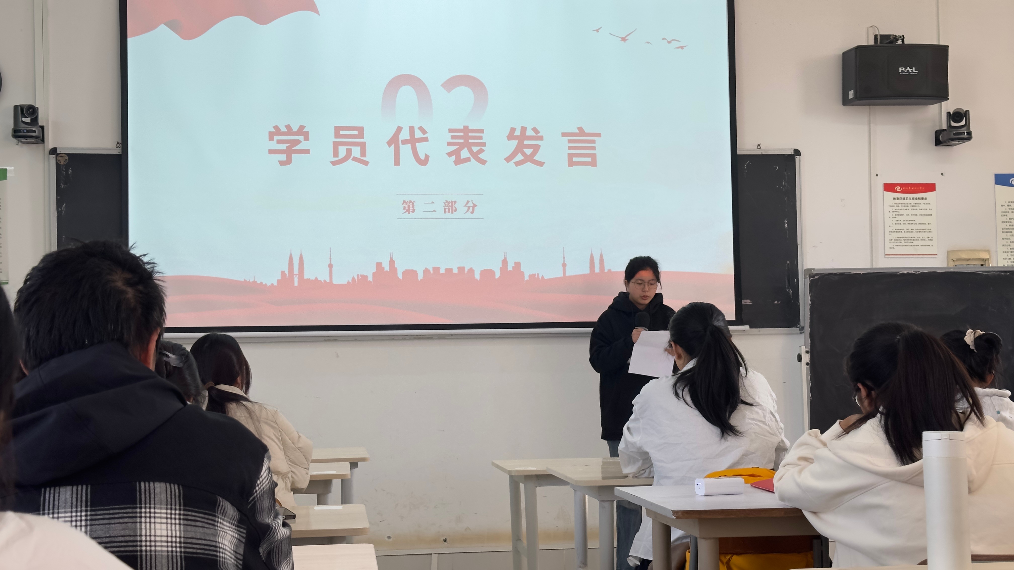 哲学学院新发展团员陈嘉燕作为学员代表发言