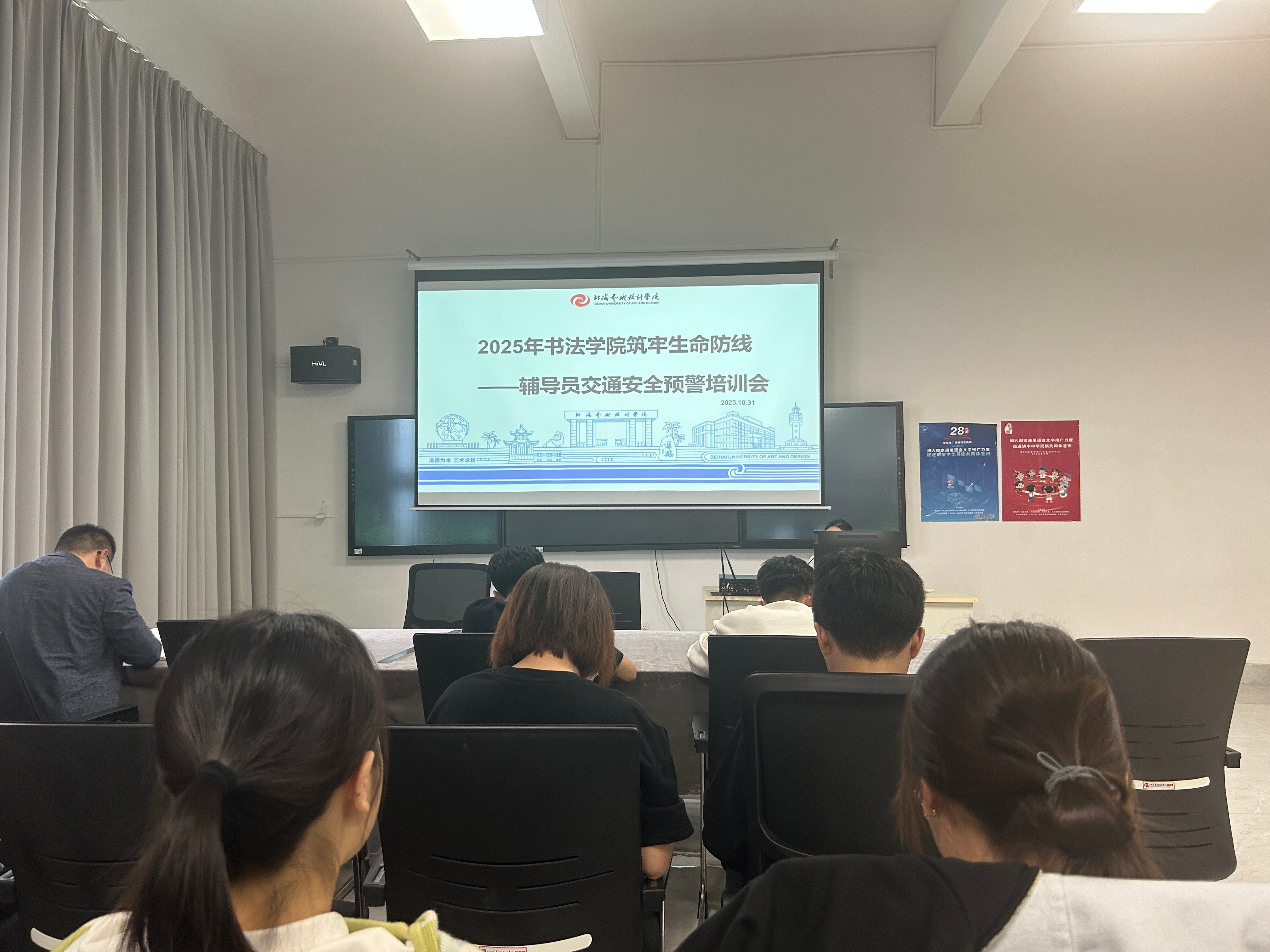 书法学院学工队伍始终将学生安全置于首位。此次交通安全预警培训会的举办,不仅强化了辅导员队伍的安全责任意识与预警能力,也为学院持续深化“平安校园”建设,营造安全、稳定、和谐的育人环境奠定了坚实基础。学院后续将持续关注学生安全动态,定期开展相关主题教育活动,多措并举,全力护航学子成长成才。(陈梅倩/摄)