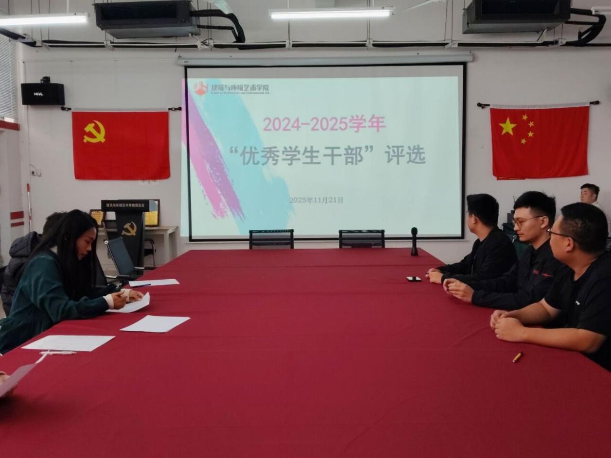 2025年11月21日11:30,建筑与环境艺术学院在公德楼507会议室举行本年度“三好学生”、“优秀学生干部”和“先进班集体”评优评先工作。此次活动邀请了建筑与环境艺术学院党总支书记庞定坤,学院副院长蔡世伟、张乐平,教研室主任张卫东,实验室主任贾金琨作为评委出席。会议由学院党总支副书记曲玥主持。