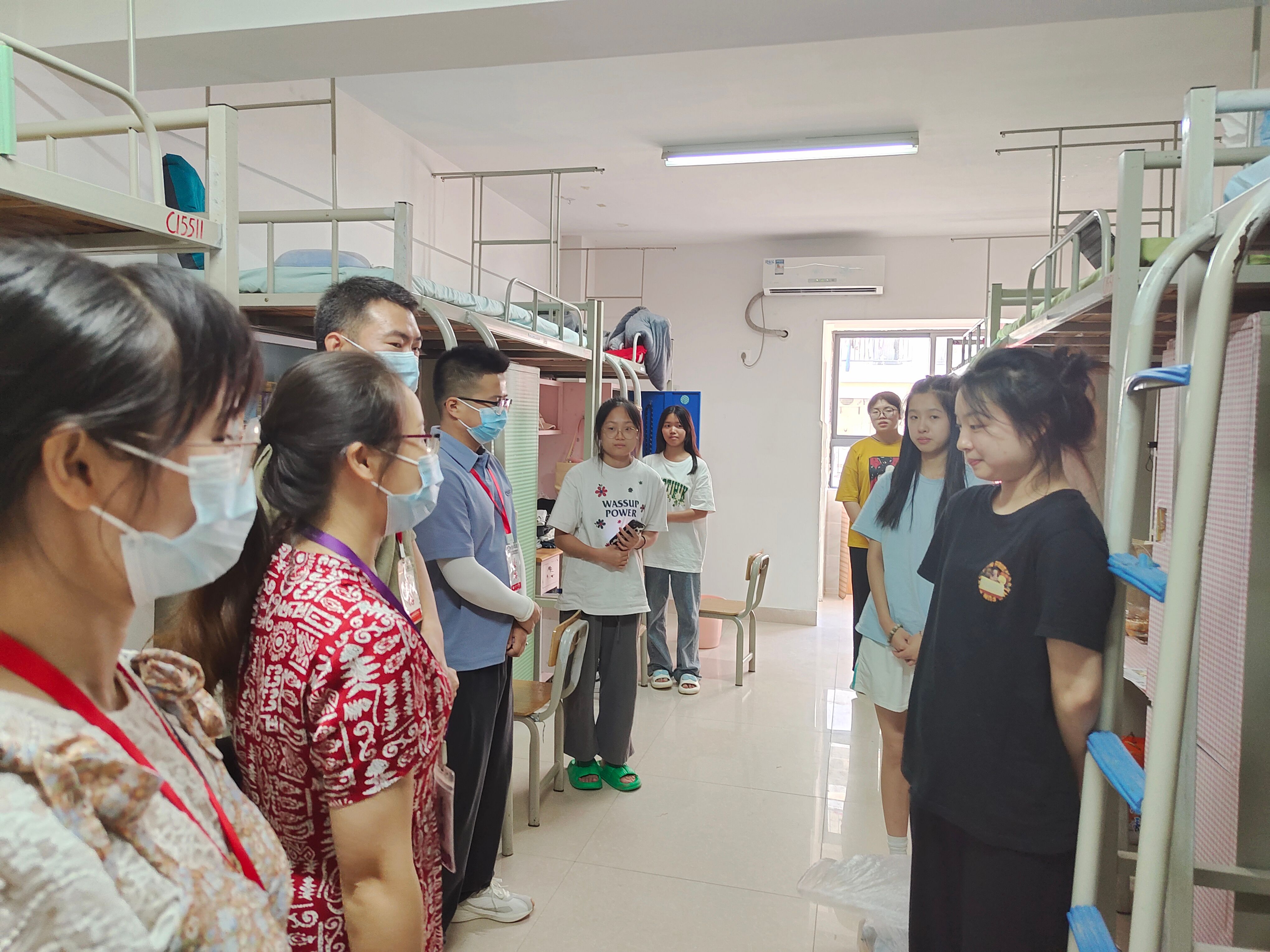 在走访寝室过程中,刘承初书记与同学们亲切地交谈,了解同学们到北艺后的感受,对同学们嘘寒问暖,送上中秋节日祝福。刘书记非常重视寝室安全,发现消防、财产、设施等安全隐患,立即指导现场整改,提醒同学们提高安全防范意识,确保大学生活安全有序。刘书记希望同学们调整状态,尽快融入在北艺的大学生活,珍惜青春时光,努力搞好专业学习积极参加社会实践,与同学友好相处,在北艺学有所成,不负时代,不负韶华,为实现中华民族伟大复兴贡献青春力量。