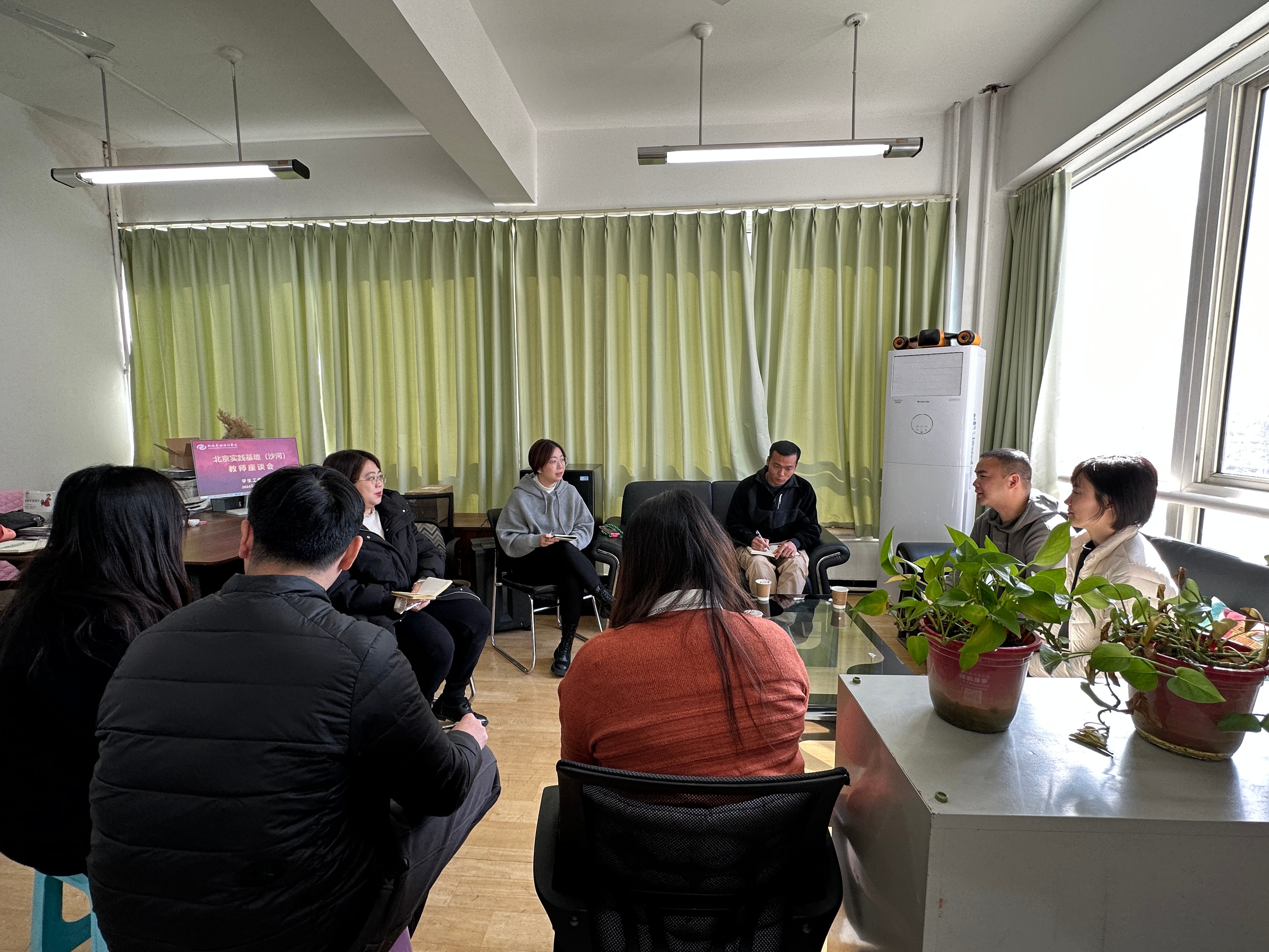 考察期间,首先与北京实践基地的学生工作负责人和班主任老师们进行了座谈交流。会上,北京实践基地详细介绍了基地学生管理情况,并针对基地学生工作的管理特殊性及应对措施等进行了深入探讨和解决。