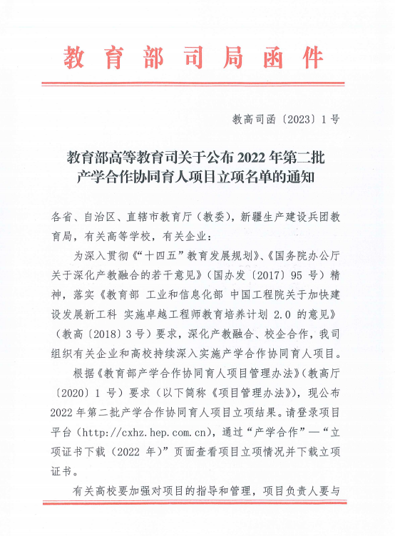 我校荣获1项2022年第二批教育部产学合作协同育人项目