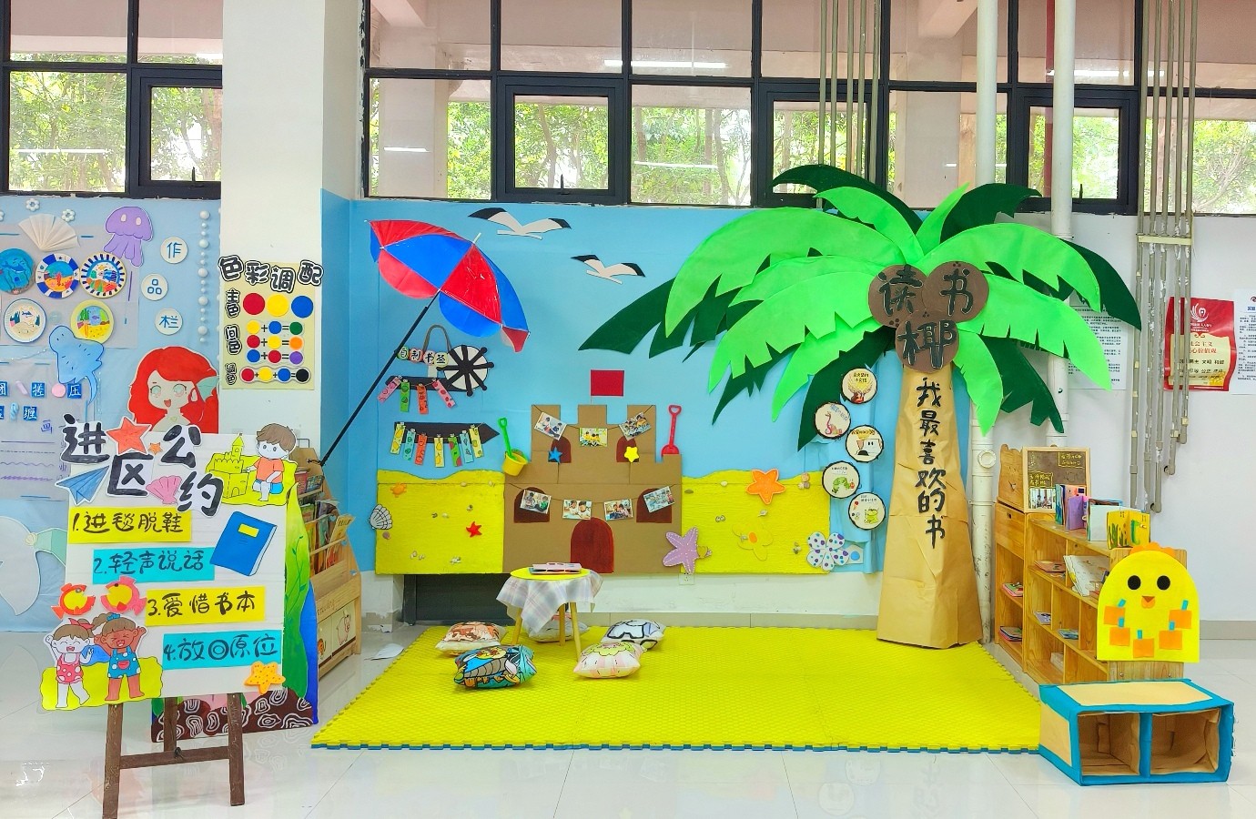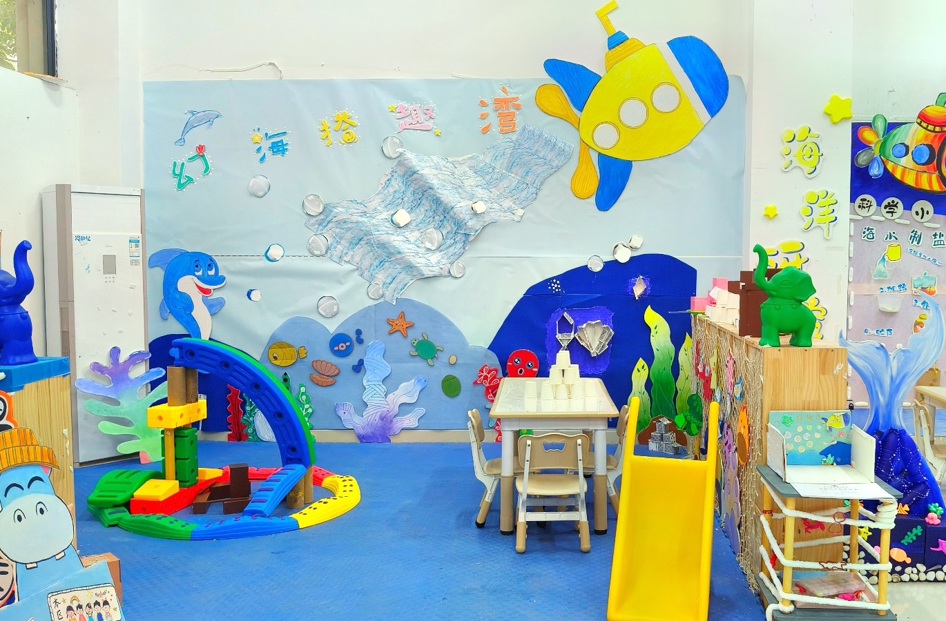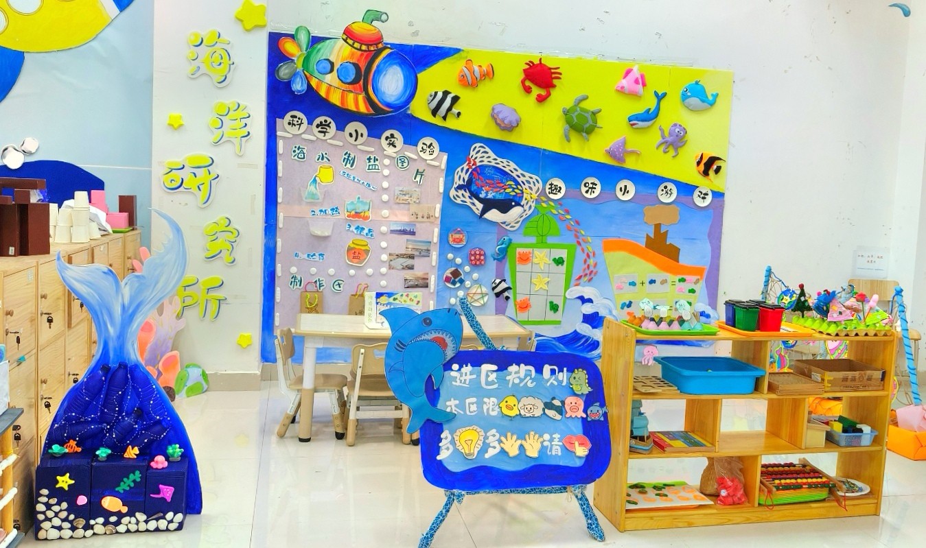 幼儿园环境创设课程是美术综合知识技能结合幼儿园实践工作的具体实操课程,专业指向性强。本课程使学生初步具备独立创设幼儿园环境的能力,树立正确的学前教育观念。本次结课汇报展共展出作品六组,均以幼儿园环境创设基本理论为基础,联系教育见习经验,并巧妙结合北海地方文化特色。此次汇报展是对学前教育专业阶段性教学成果的一次检验。