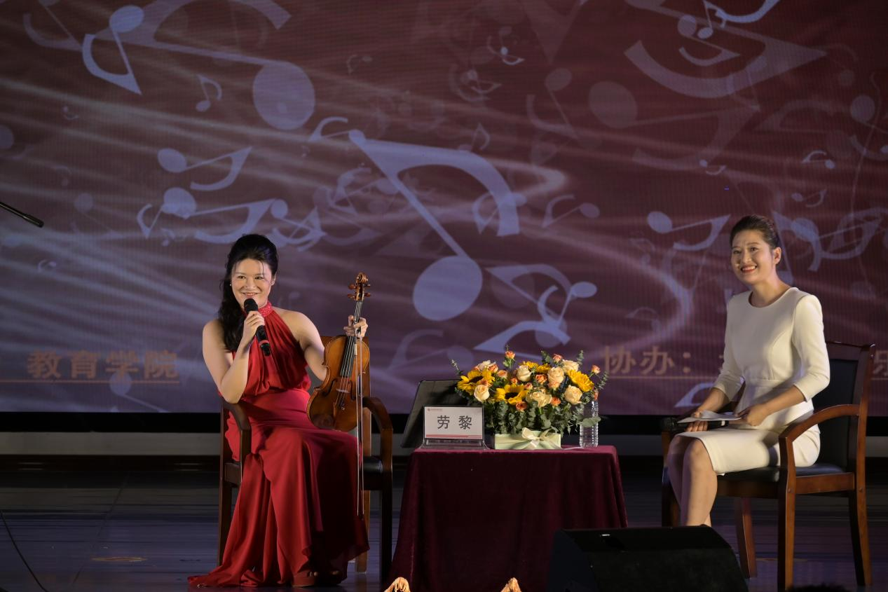 2025年5月9日晚,北海艺术设计学院为深化美育教育实践、提升学生的艺术修养,特邀请到国际乐坛备受瞩目的中国小提琴演奏家、中央音乐学院管弦系劳黎老师,以“乐贯东西・与光同尘”为主题,用灵动的琴弦编织出跨越国界的艺术对话。北海艺术设计学院校长卢新华、副校长包建明、总督学王斌、纪委书记王照伟、教育学院院长熊秀峰、副院长蒙剑英等领导出席了本次活动。同时,本次活动受到了北海市文艺界与教育界的广泛关注,北海市音乐家协会主席林海等众多社会各界的音乐爱好人士莅临活动现场。
