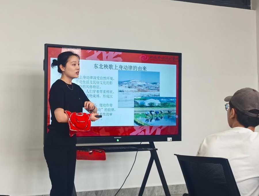 一号选手谷乐老师上了一堂精彩的东北秧歌--上身动律训练教学课,讲解了东北秧歌中上下动律、前后动律的上身动作如何示范和练习。谷老师通过规范的舞蹈动作、专业的舞蹈术语细致地讲解东北秧歌的民俗民风以及动作特点,强调每一个动作的规范性,让同学们感受到了东北秧歌的“艮”“俏”“浪”的特点。