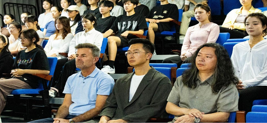 随后,David McGravie教授分享了英国艺术的发展脉络以及英国切斯特大学舞蹈专业的情况。在交流中,他提到艺术是跨越语言的共通媒介,希望以此次交流为契机,未来能在师生互访、教学科研、作品共创等方面深化合作,助力两国青年舞者成长。他还指出,此次中外舞蹈交流活动不仅为两校师生提供了展示与学习的平台,更是推动东西方艺术文化互鉴的重要契机。他强调,北海艺术设计学院舞蹈学院始终致力于培养具有国际视野的艺术人才,未来将以此次交流为起点,进一步加强与海外高校的合作,通过联合教学、学术研讨、作品共创等多种形式,促进中外艺术教育的资源共享与优势互补,助力学生在多元文化的碰撞中提升艺术素养与创新能力。