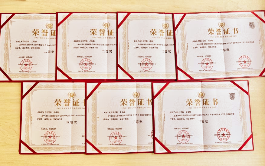 自本次大赛启动以来,文学院面向全校广泛发布赛事通知,通过教师动员、线上群组答疑等形式积极组织宣传、开展答疑指导,累计吸引全校75名同学踊跃报名参赛。经过初赛与决赛的层层比拼,最终共有7名学生在决赛中脱颖而出。其中,尤楚怡4名同学荣获本科生组全国决赛二等奖,李佳怡等3名同学荣获本科生组全国决赛三等奖,充分展现了北海艺术设计学院学生优秀的语言功底。