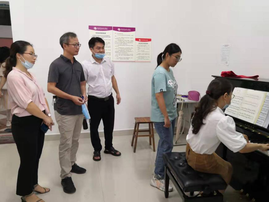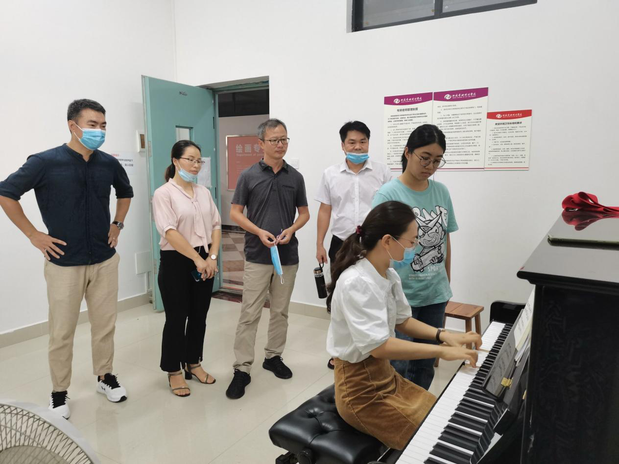 学院领导一行分别来到学前教育专业的画室、艺术教育专业的琴房、舞蹈表演专业的舞蹈教室和哲学专业教室进行巡查,主要对教风、学风、教学保障等情况进行检查与监督,包括教师到岗情况、学生出勤情况、教材到位情况、教师授课状态、学生纪律情况、教学设施情况等。