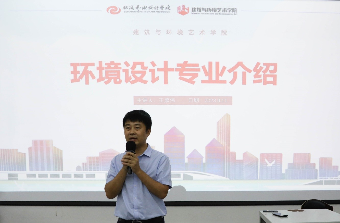 用青春的活力幻化绚烂彩虹,用生命的热情谱写青春旋律,插上理想的翅膀,扬起青春的风帆!2023年9月11日,建筑与环境艺术学院于功德楼107开展了专业介绍主题讲座。本次讲座诚挚邀请到了建筑与环境艺术学院院长王照伟出席本次讲座,为新同学们讲解环境设计相关专业知识。