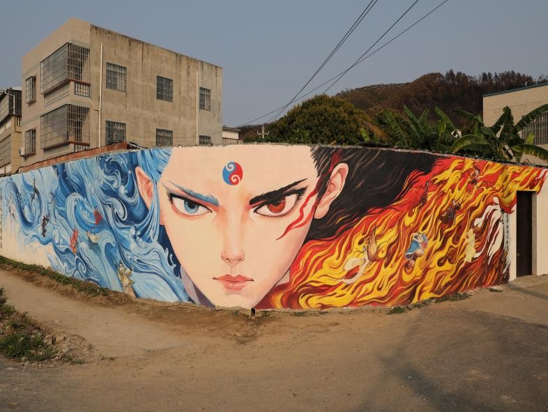井山村“小洱海”墙绘项目以“红色文化”“农耕文明”“生态旅游”等为主题,30余名师生从调研、设计、实施总计耗时3个月,在五百平方米墙面上创作《红色文化》《渔耕四季》《柿柿如意》等系列作品,将当地特色文化、田园风光转化为可互动的视觉符号,打造“一步一景”的沉浸式乡村文旅体验,验收现场,庞丽副乡长表示:“墙绘不仅扮靓了村容村貌,更让村民在艺术熏陶中增强了文化自信。”