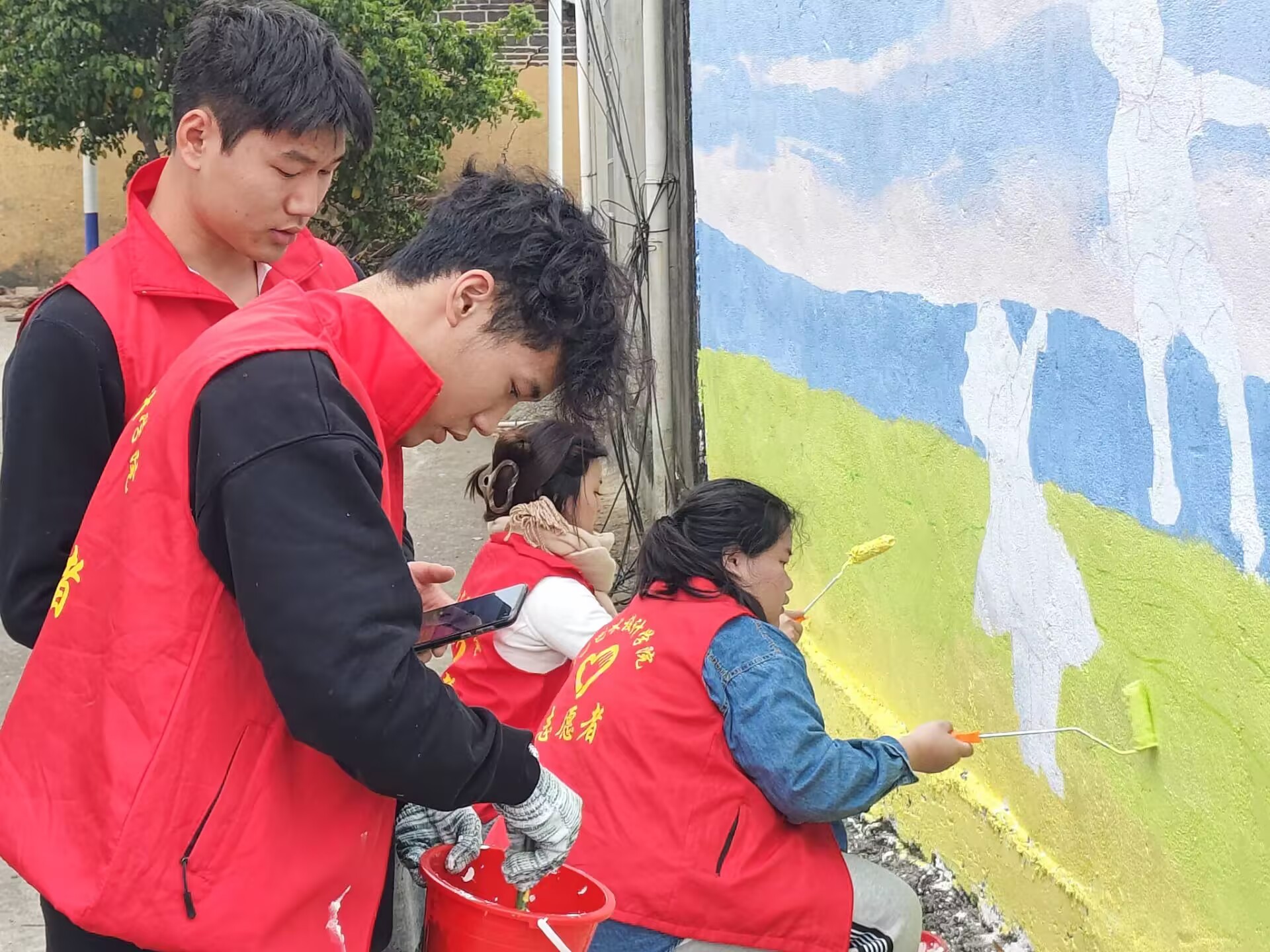 在创作中期,师生团队与村民紧密合作,共同参与到墙绘项目的每一个细节中。不仅促进了艺术与乡村文化的深度融合,还激发了村民对本土文化的认同感和自豪感。村民们纷纷表示,看到自己村庄的墙面变得如此美丽且富有文化内涵,他们感到非常骄傲和高兴。