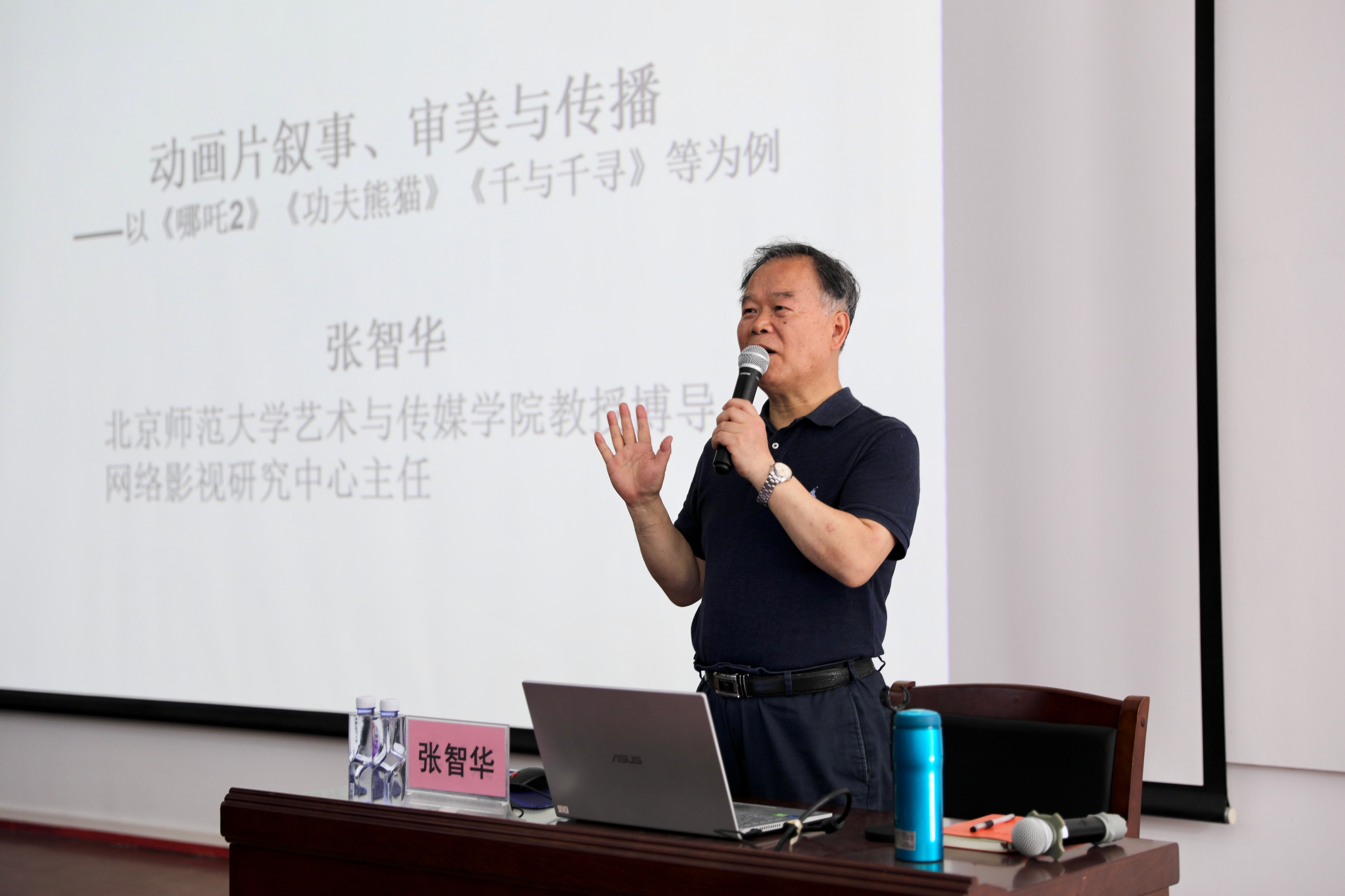 为深入激发学生对动画艺术的审美鉴赏与创作热情,4月15日,动画与传媒学院特邀北京师范大学艺术与传媒学院教授、网络影视研究中心主任张智华教授,在我校西区伦理楼107室举办了一场题为《动画片叙事、审美与传播——以<哪吒之魔童闹海><功夫熊猫><千与千寻>等为例》的精彩讲座。本次讲座由动画与传媒学院动画教研室主任吴锡红担任主持。
