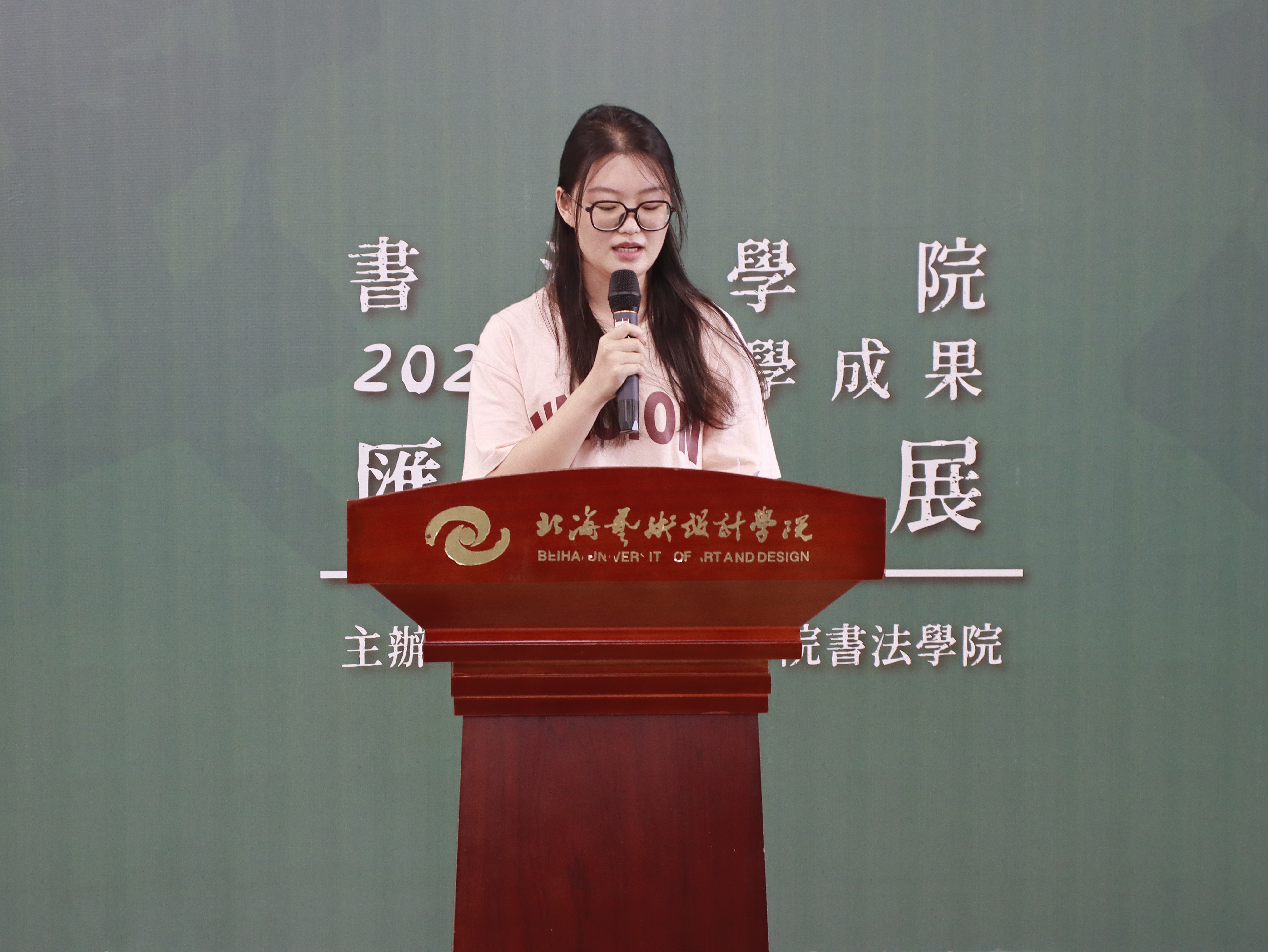 书法学院常务副院长苏乃从在开幕式上介绍本次展览的情况。他指出,本次展览是2022级同学三年来书法学习的阶段性总结,也是学院教学成果的集中展示。书法学院始终秉持“以文养书,以书育人”的教学理念,将文化底蕴与书法技艺紧密结合。展览共展出作品130幅,涵盖了篆、隶、楷、行、草等多种书体,作品风格各异,充分展现了同学们扎实的基本功和独特的艺术视角。
