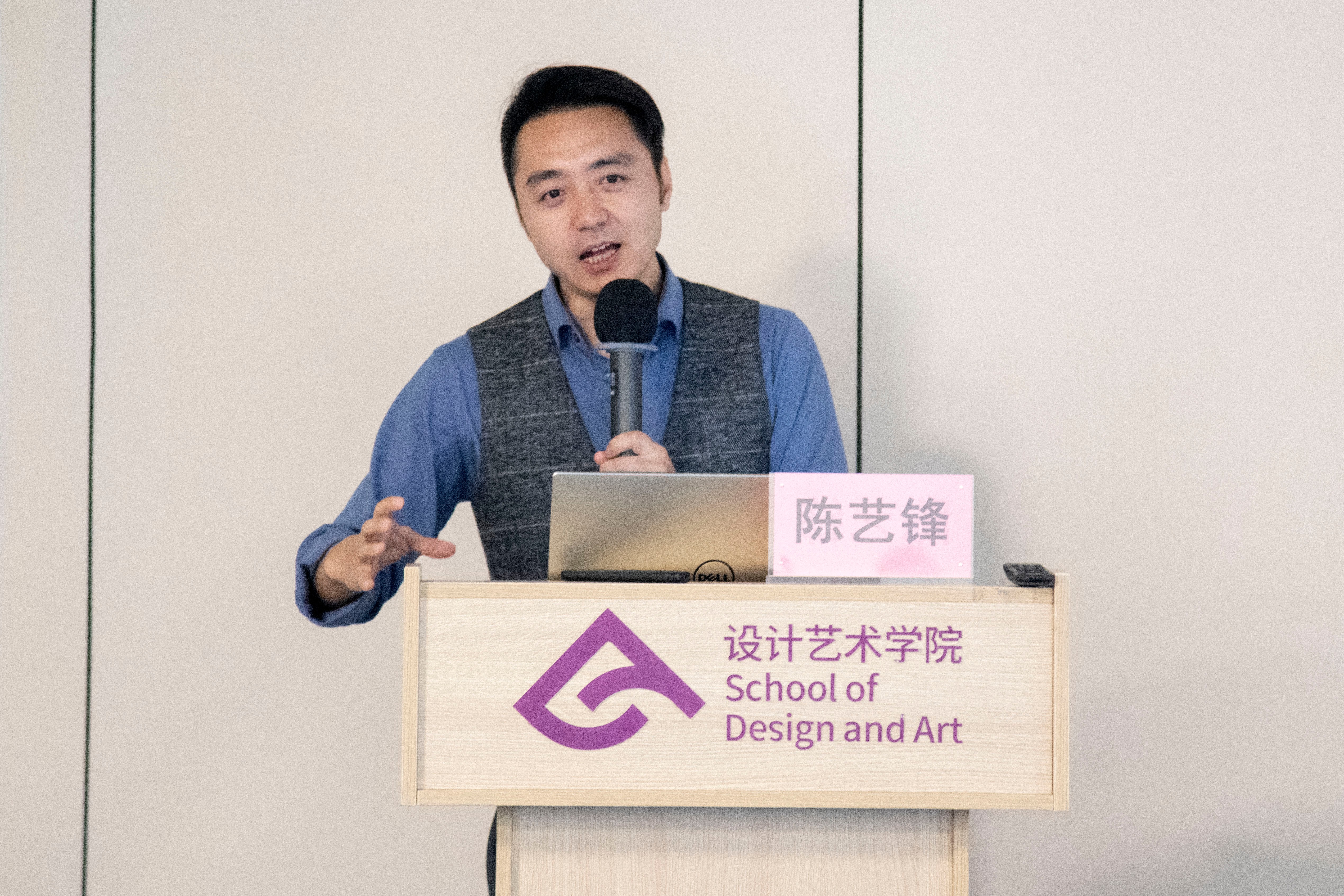3月19日下午16:00,北京觅拍信息技术有限公司创始人CEO、北京今成名元文化传媒有限公司联合创始人、海南大学的研究生导师、北京财贸学院客座教授、天津卫视《非你莫属》boss团成员陈艺锋教授,为我院教师带来了一场主题为“人工智能助力文化创意设计教学能力提升”的培训。