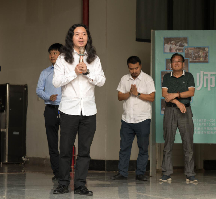 出席的嘉宾有北海艺术设计学院副校长胡胜教授,副校长彭仁教授,北京服装学院张玉祥教授、动画学院常务副院长陶立阳教授、设计学院常务副院长李林平教授、美术学院教学督导李敬义教授、美术学院副院长成斌教授和龚为教授、以及策展人张湘中老师等。